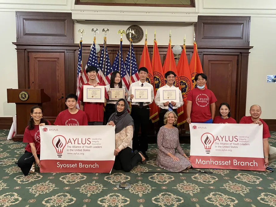 On 6/21/2023, members of Aylus Syosset (and some member of Aylus Rosyln, Dix hills and Manhasset) Celebrated  their successes at Manhasset Public Library. AYLUS Syosset volunteers met up with councilwoman Veronica Lurvey of North Hempstead, Town Supervisor Jennifer S. DeSenda of North Hempstead,  Town Councilman Peter J. Zuckerman of North Hempstead and Councilwoman Christine Liu of Manhasset to receive volunteer awards. The supervisors and council members along with the parent advisors of AYLUS Manhasset (Gracie Chen) and AYLUS Syosset (Francina Liu, Guangli Yang).