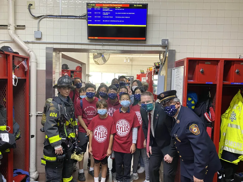 On September 11th, 2024, AYLUS Syosset continued its tradition of visiting and touring the Syosset Fire Department for 9/11 candlelight memorial day. Although the event was planned extremely last-minute, AYLUS members were able to collectively come together to dedicate their Monday night to remembering those lost in the September 11th attacks. Members were given a speech by First Assistant Chief of the Syosset Fire Department Robert Leonard and were able to meet four other members of the board. Syosset Fire Department is dedicated to protecting our local community, showing both compassion and urgency for those in emergencies. The Department also engages in extensive community education, mitigation of fires, first-aid medical care and countless other invaluable services. AYLUS Syosset is extremely grateful to those that dedicate their time to training in their program and of course, those who are full-time firefighters and professionals.