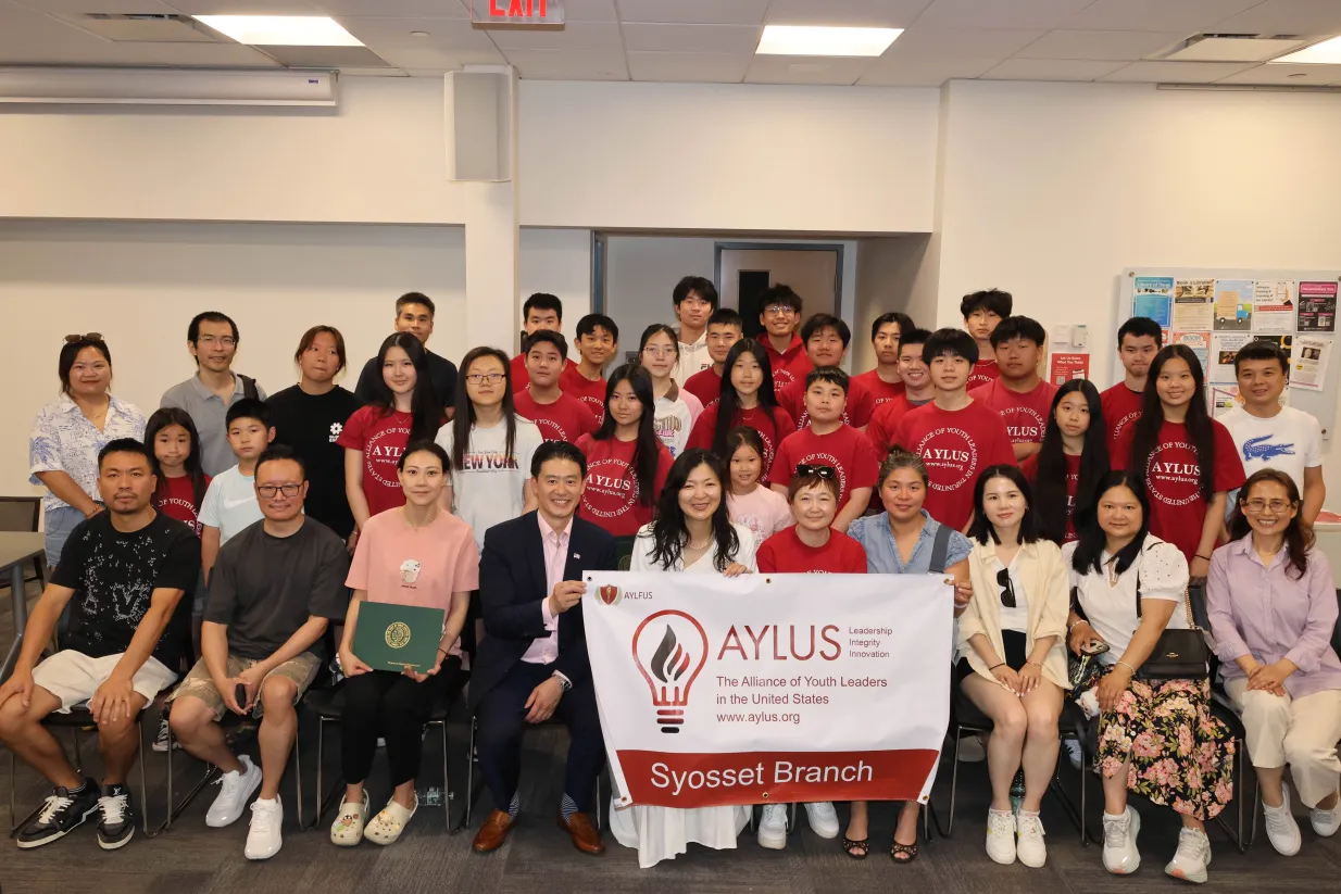 On 6/21/2025, members of Syosset, Rosyln, Great Neck, and Oyster Bay AYLUS commemorated their hard work and dedication at the AYLUS Award Ceremony held at the Great Neck Public Library. Members from all branches met with Steve Chen, president of the Great Neck Chinese Association (GNCA), Jason Lew, President of the Greater Roslyn Association for Chinese Enrichment (GRACE), Christine Liu, Council Woman, the first Asian-American elected to the North Hempstead Town Council to receive AYLUS PVSA Gold, Silver, and Bronze awards.