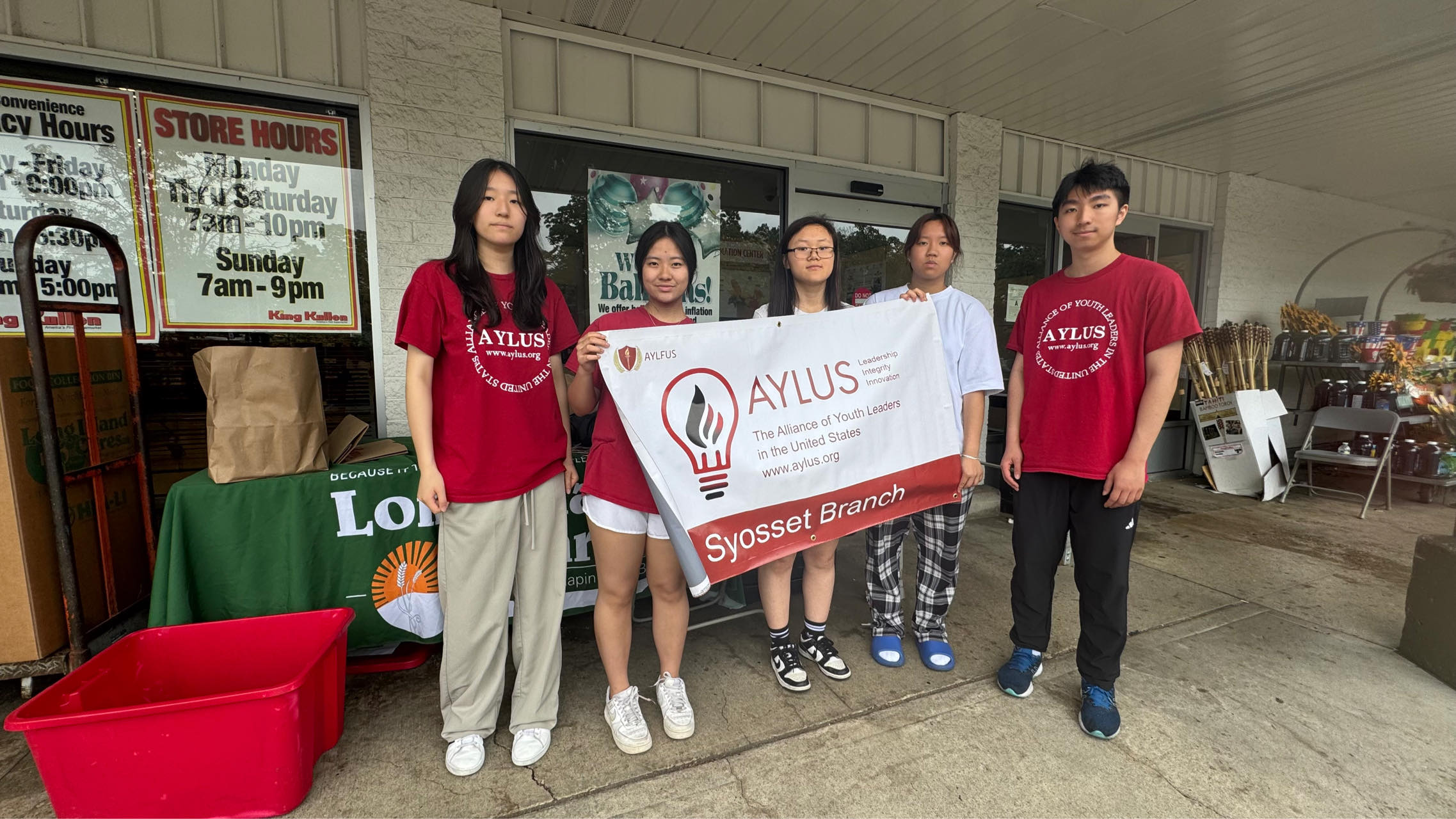 On Saturday, June 7th, Syosset AYLUS members came to Long Island Cares, Huntington as an opportunity to give back to the community, and those who are less fortunate than us. Long Island Cares is an organization dedicated to opening food banks to help fight food insecurity all over Long Island. They donate over 14 million pounds of food annually, and AYLUS is honored to be a part of this impact. As this is their 45th year in service, Syosset members gathered together to hand out flyers starting from 1PM. Hundreds of flyers later, volunteers not only got to practice their soft skills, but were able to collect over 6 full boxes of different foods, hygiene, and baby products. Overall, it was an extremely successful day for Long Island cares despite the rainy weather.