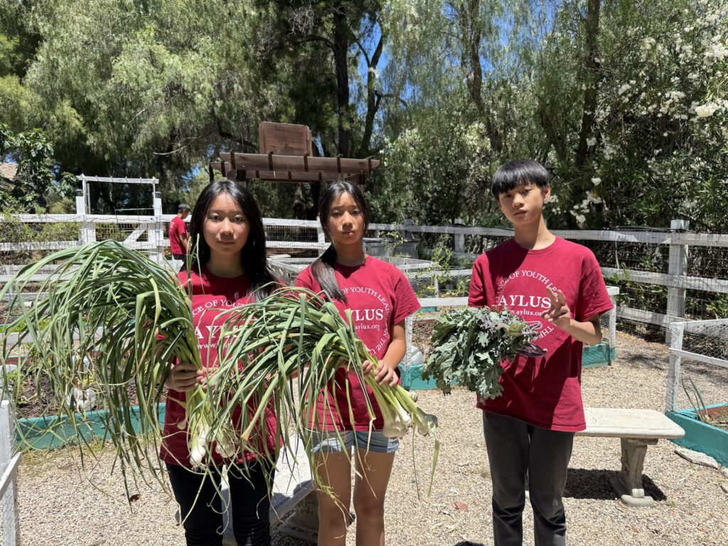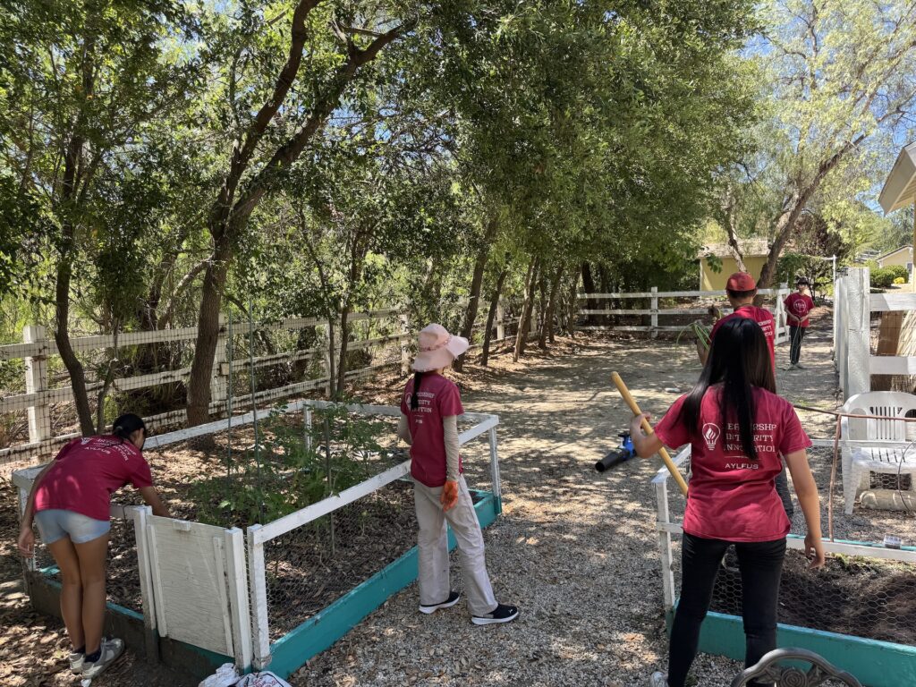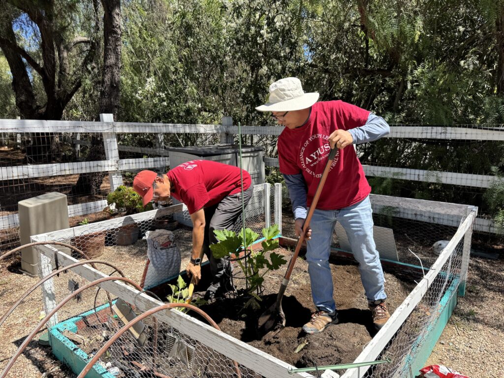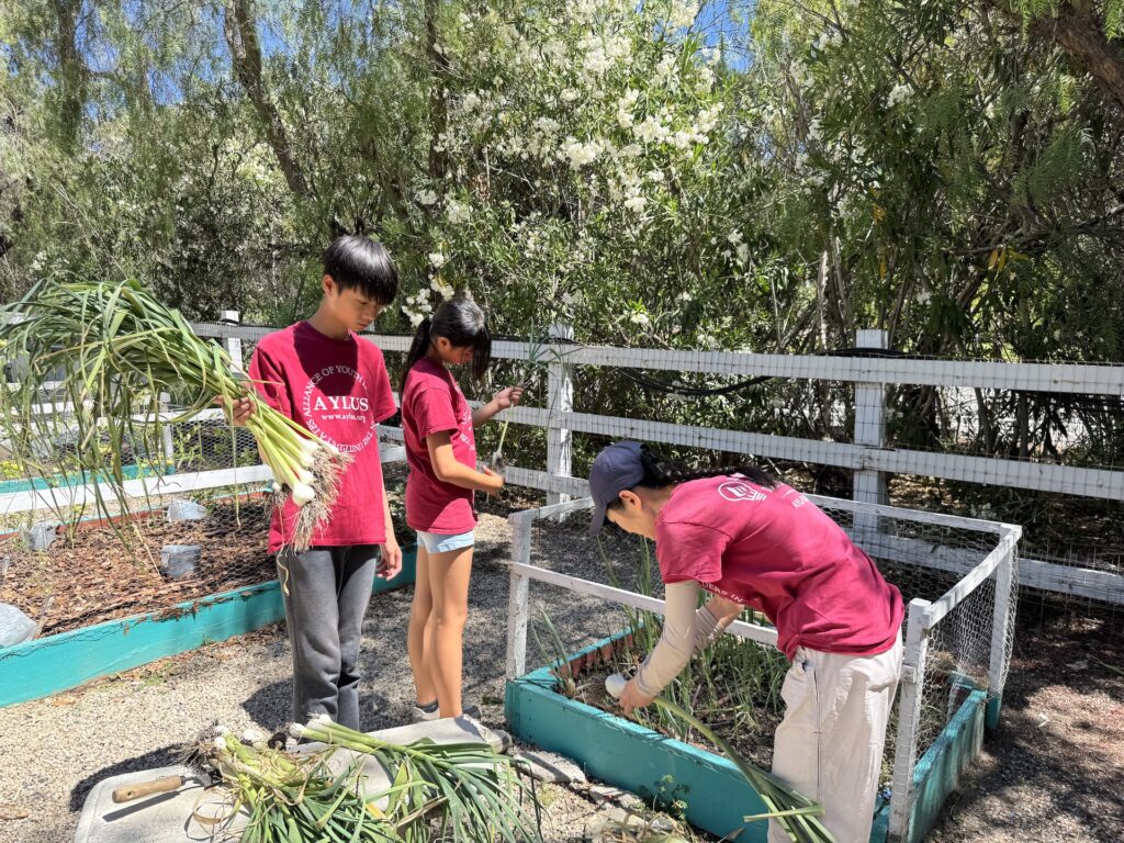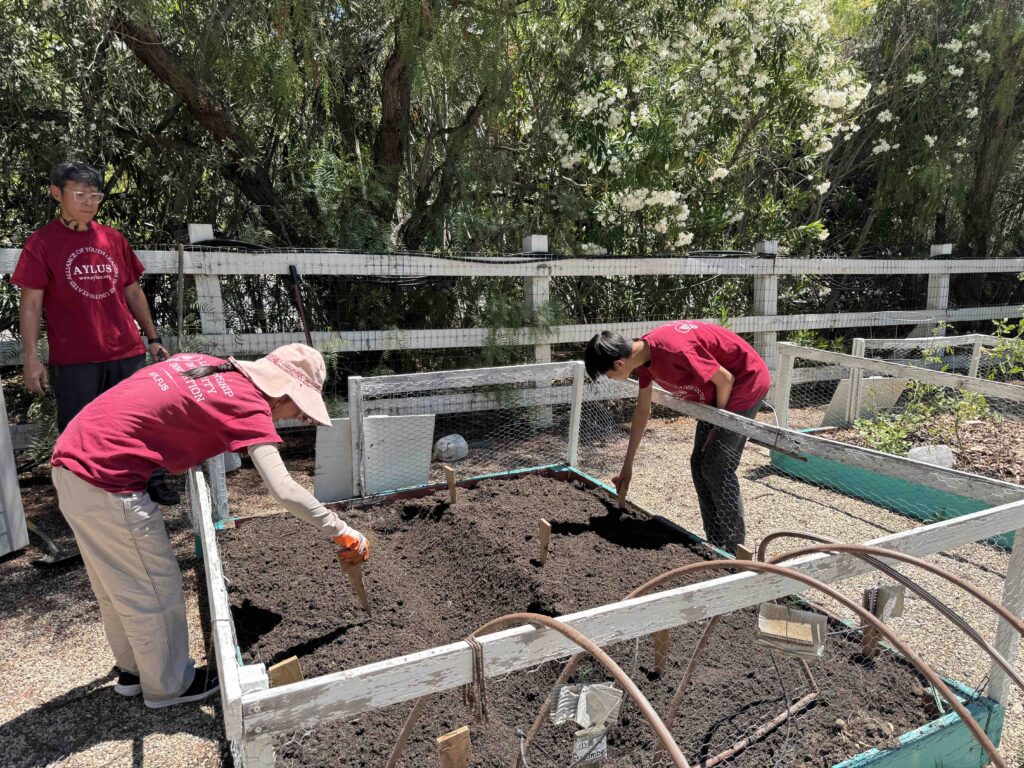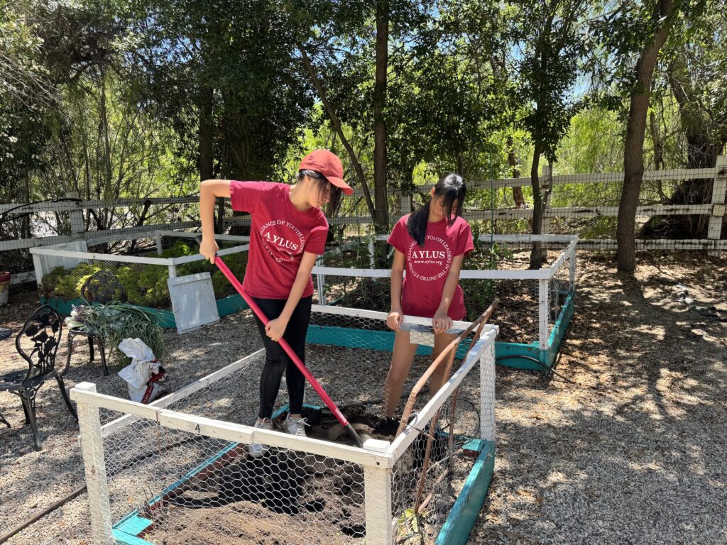 On July 5, 2025, AYLUS members spent the day maintaining the vegetable garden. They started by weeding the beds, then they harvested the garlic, carefully pulling up the bulbs that were ready. loosened the soil in two of the beds and added the fertilizer they had bought from Home Depot to enrich the soil. Members planted pumpkin seeds in the two beds, excited about the prospect of harvesting them just in time for the Halloween holiday!
