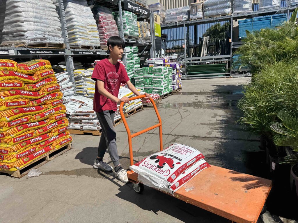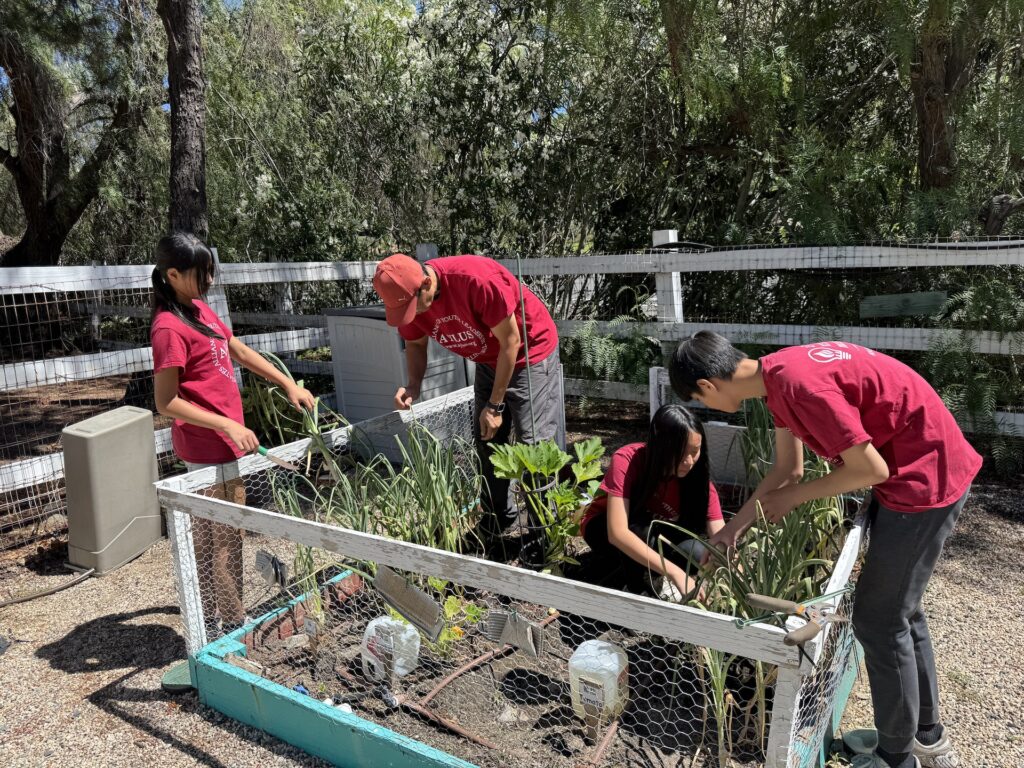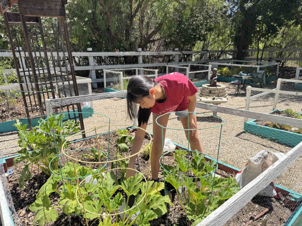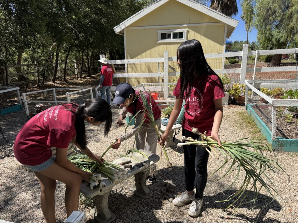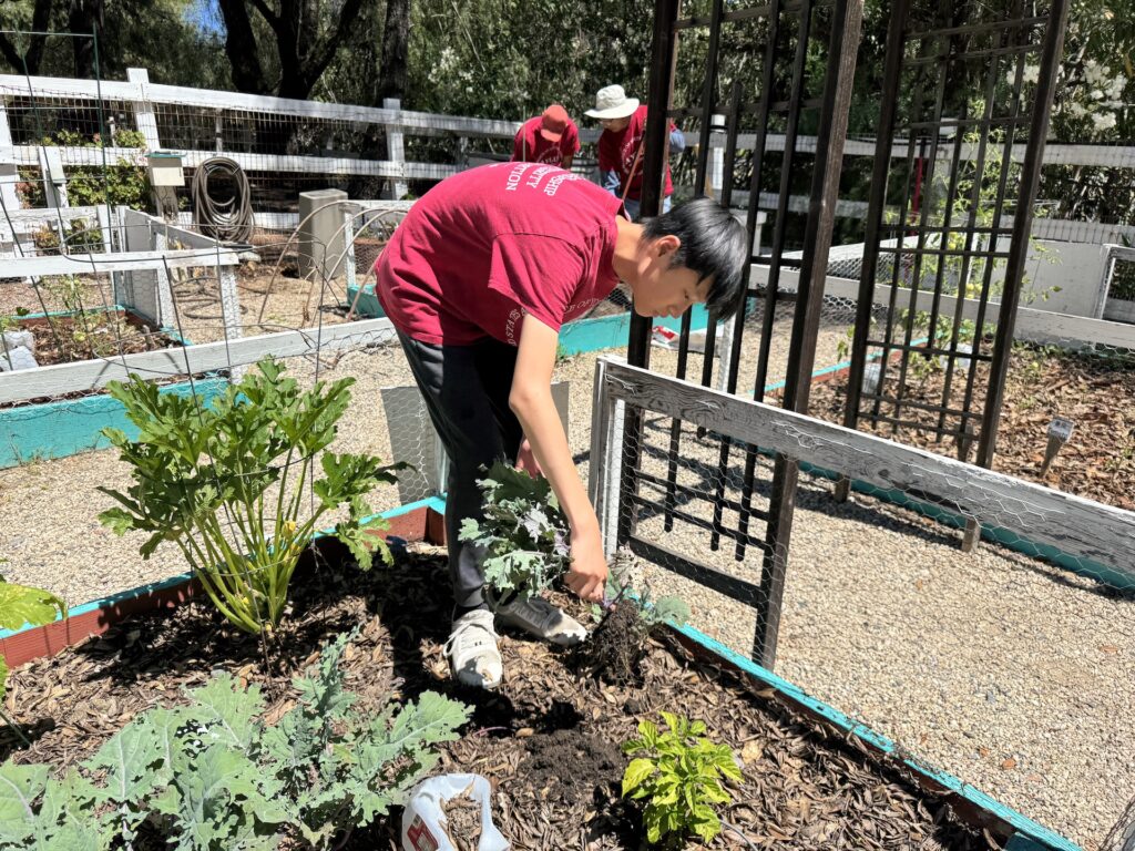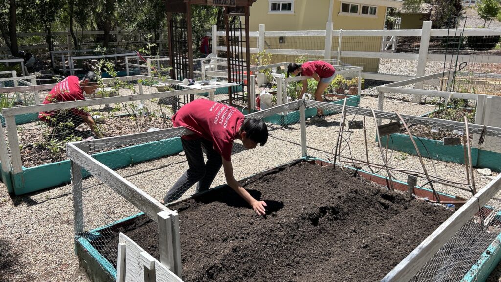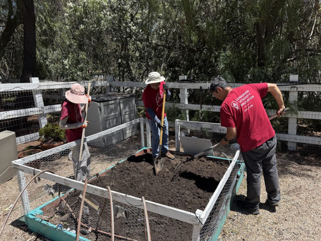 On July 5, 2025, AYLUS members spent the day maintaining the vegetable garden. They started by weeding the beds, then they harvested the garlic, carefully pulling up the bulbs that were ready. loosened the soil in two of the beds and added the fertilizer they had bought from Home Depot to enrich the soil. Members planted pumpkin seeds in the two beds, excited about the prospect of harvesting them just in time for the Halloween holiday!