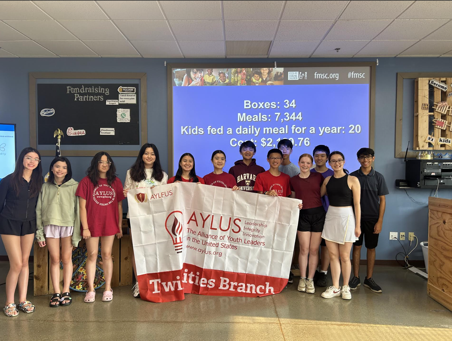 On Saturday, July 12, 2025, the AYLUS Twin Cities Branch went to Feed My Starving Children to pack food. Even with only about 20 people at the session, we still packed a total of 34 boxes!