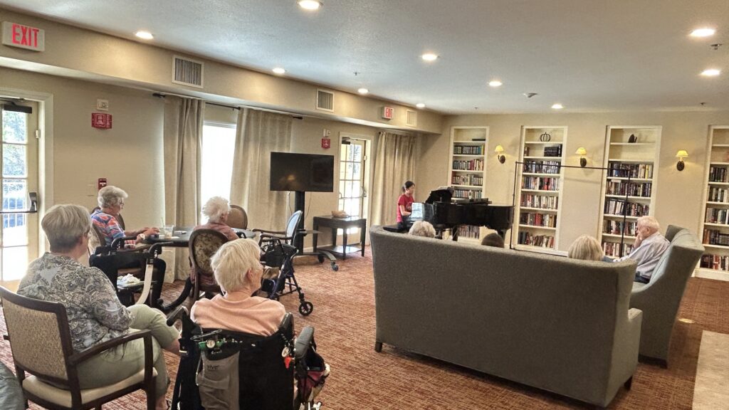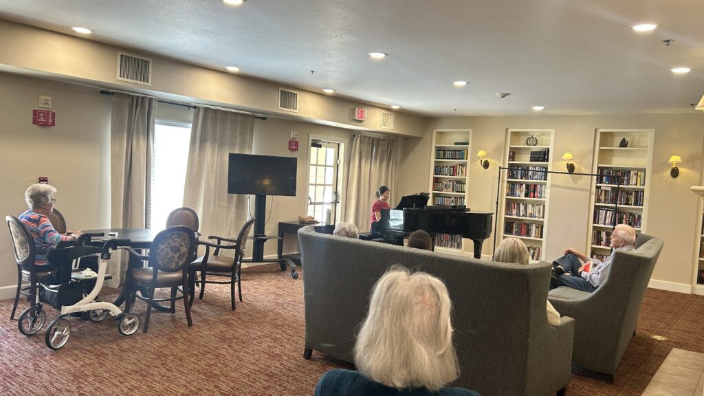 As usual, several seniors were already waited in the library for their favorite piano music. The performance started with some romantic pieces, followed by well-loved classical tunes, and wrapped up with lively jazz melodies that had everyone tapping their feet. Meanwhile, in the ice cream parlor, members served seniors and guests their favorite ice cream flavors, spreading smiles and creating a warm, friendly atmosphere. It was a day filled with music, laughter, and community spirit.