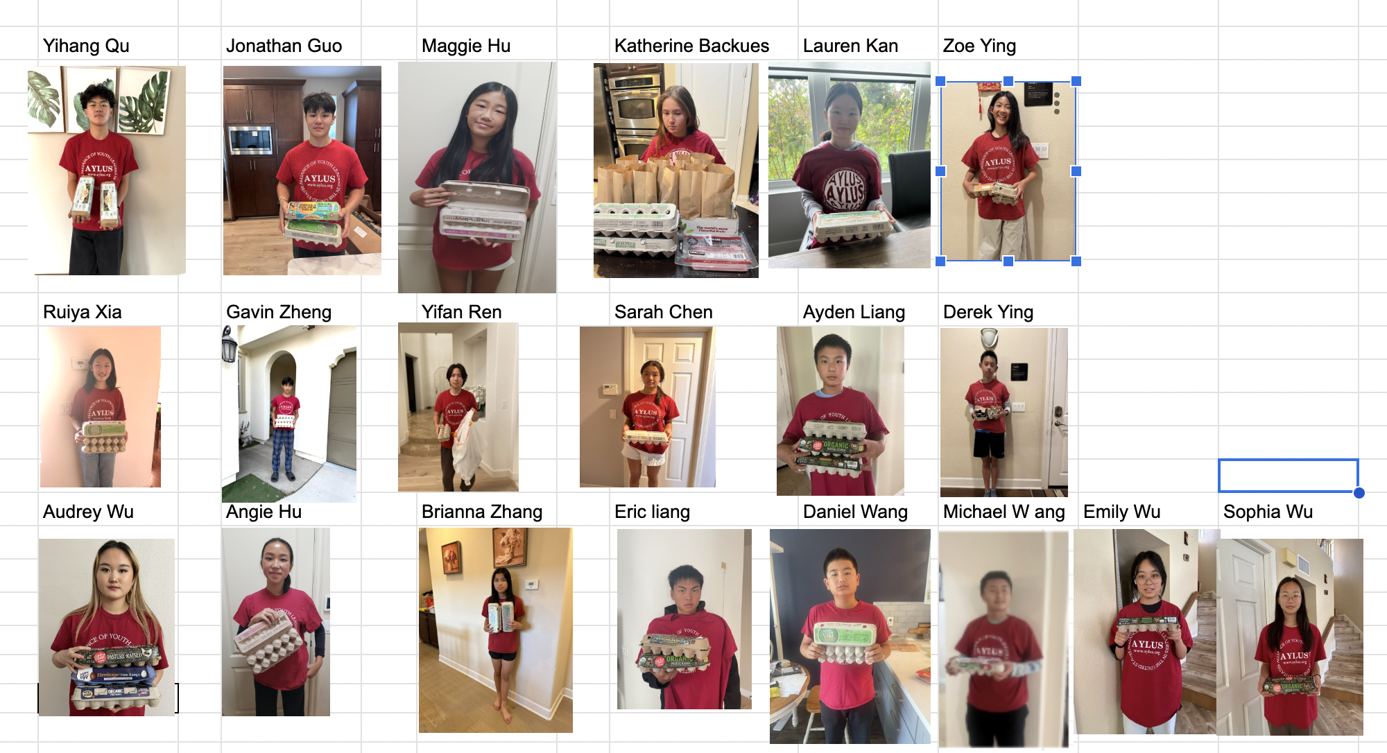 Derek Ying, Zoe Ying, Yihang Qu, Sarah Chen, Ayden Liang, Eric Liang, Brianna Zhang, Ruiya Xia, Jonathan Guo, Gavin Zheng, Angie Hu, Maggie Hu, Katherine Backues, Audrey Wu, Yifan Ren, Michael Wang, Lauren Kan, Emily Wu, Sophia Wu, Daniel Wang.