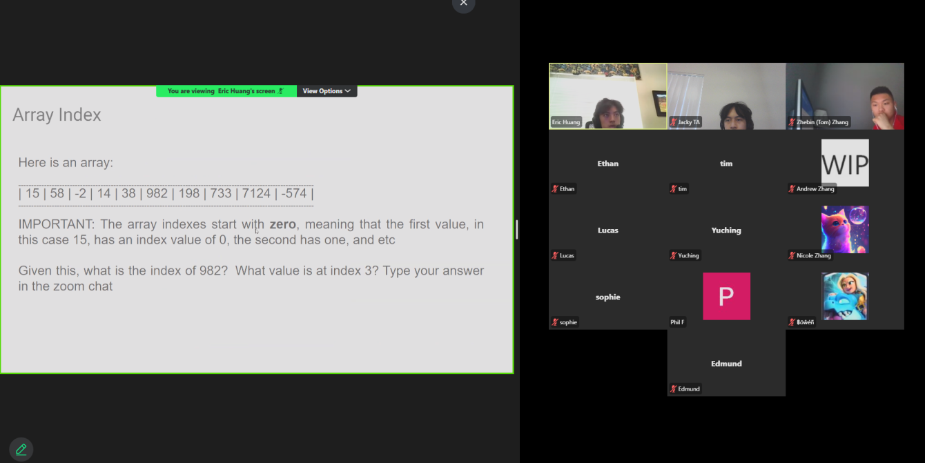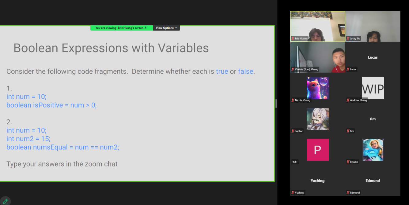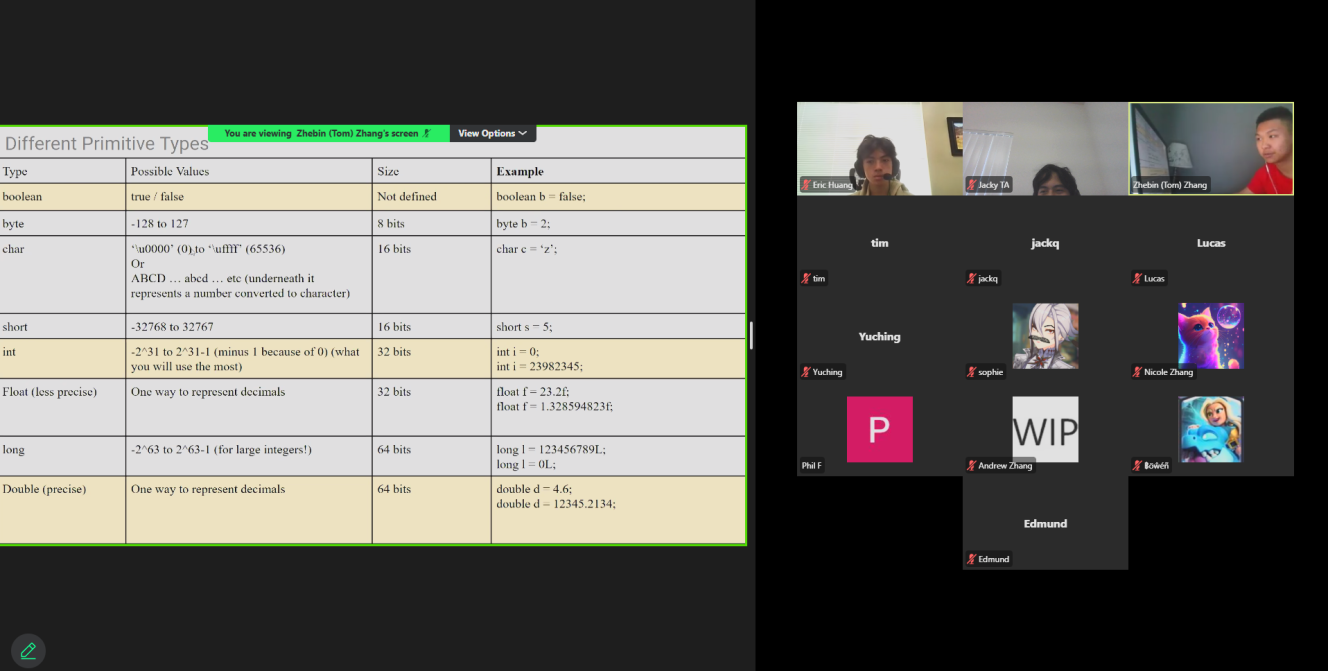 The AYLUS Lake Washington Branch successfully hosted a five-day Beginner Java Camp from July 21 to July 25, 2025. Led by teachers Eric Huang, Zhebin Zhang, and Jacky Wenjie Yan, the camp offered students a strong foundation in Java programming. Sessions were started daily at 1:30 PM, the regular lectures lasted for two hours. In addition to the regular lecture, Eric and Zhebin provided homework support, answered student questions, and dedicated time to reviewing and correcting assignments.