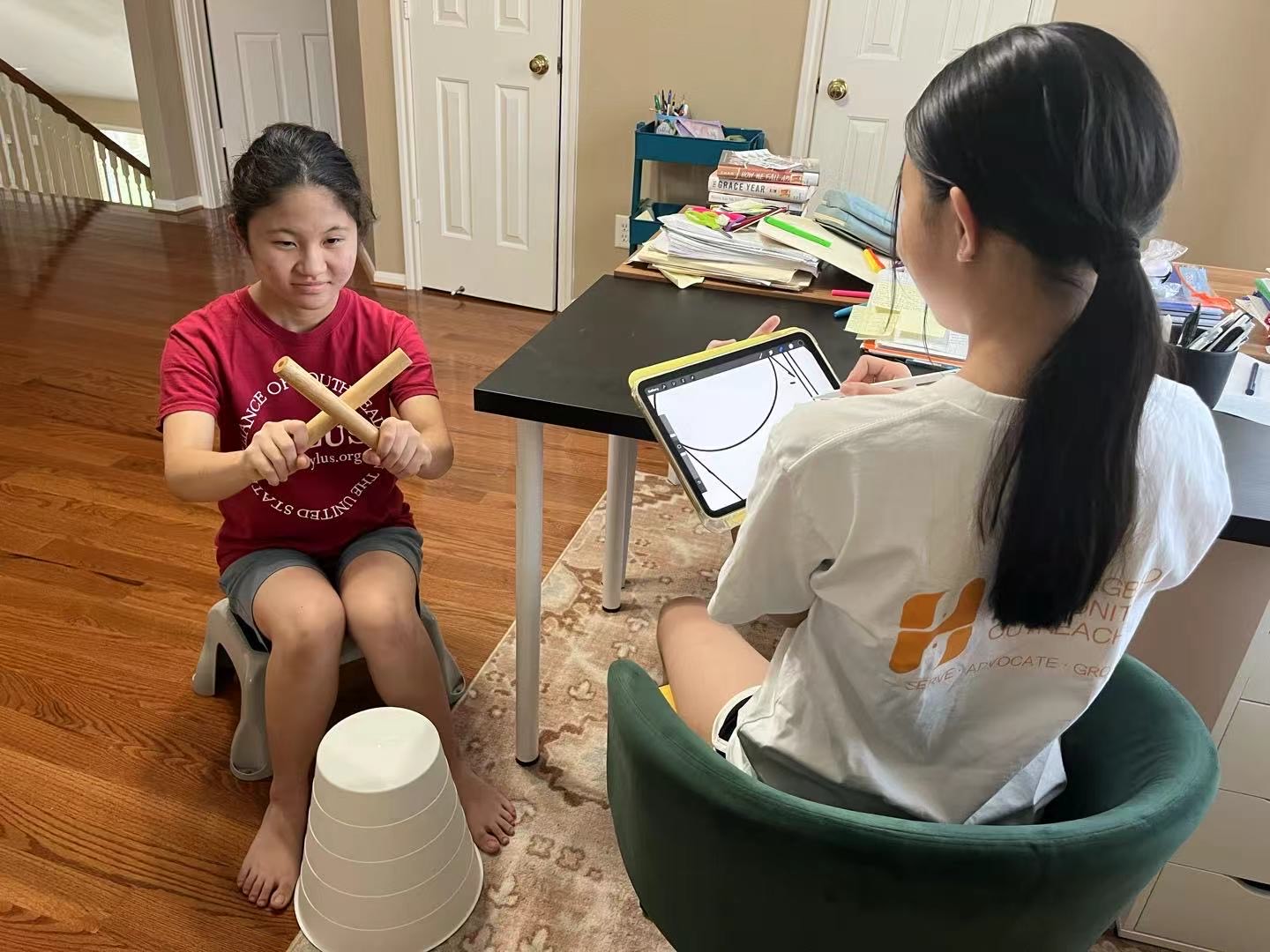 On August 3, Sulan Yang and Suya Yang collaborated to create illustrations of the bucket drumming activity and designed flyers for upcoming events serving the special needs community. Building on five years of experience working with individuals with special needs, volunteers have begun developing a curriculum that other organizations can readily adopt and implement. To effectively demonstrate the activities, detailed illustrations are essential. These visual tools will not only enhance clarity but also ensure the program can be easily replicated and scaled to reach more communities.