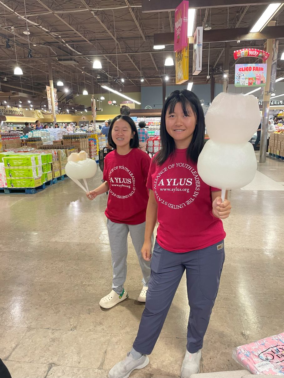 On the afternoon of August 9, 2025, seven members of AYLUS Frisco-Plano participated in a fundraising event at 99 Ranch. Volunteers made cotton candy, and sold backpacks, rings, and handmade bracelets. The funds collected from this event will be donated to the Plano Medical Center for children with cancer. The volunteers worked extremely hard during this event.