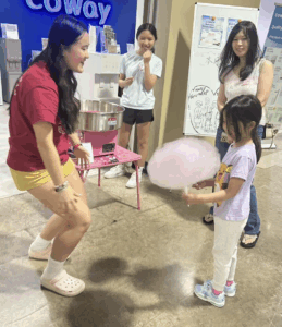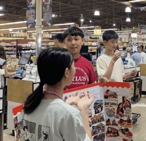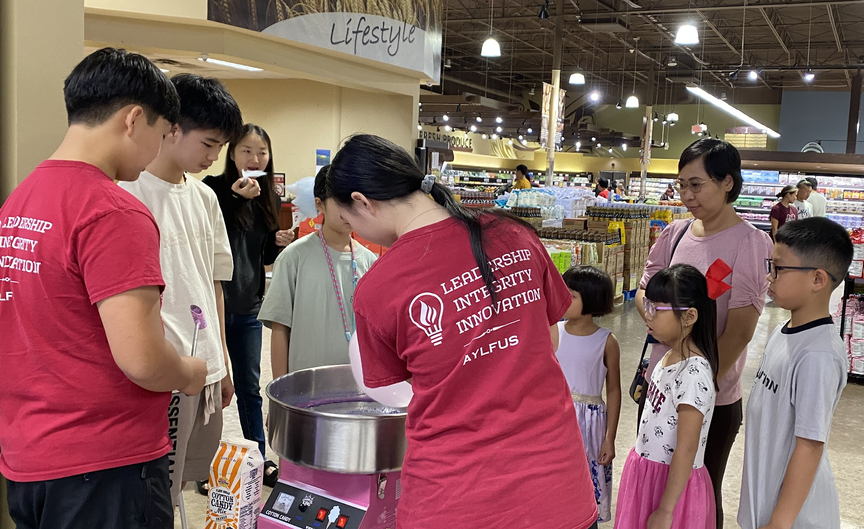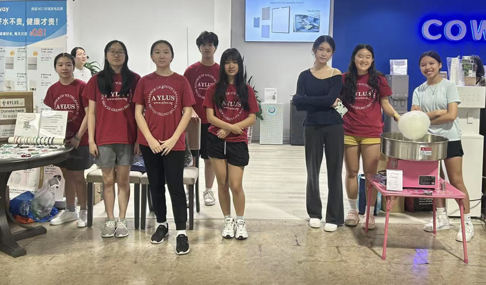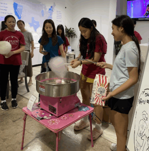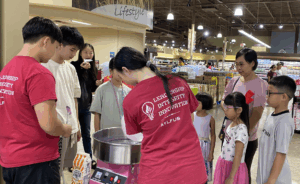 On the morning of August 9th, 2025, AYLUS Frisco & Plano Branch members gathered at 99 Ranch Market for a fundraising event. Volunteers were fundraising money for the African Libraries Project, Loops For Love Project, and to donate to children’s hospitals. Volunteers fundraised money by selling handmade gemstone bracelets, backpacks, rings, and cotton candy to community members. After arriving and signing in, volunteers got straight to work and divided the tasks among themselves with some volunteers in charge of making cotton candy while others sold bracelets. In the end, the volunteers managed to fundraise money for their projects, making this event a great success. Great job volunteers!