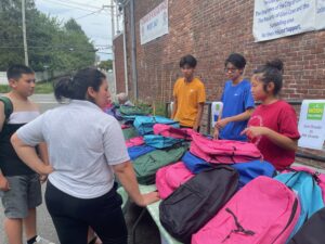 On Wednesday August 13th, from 3:00 pm to 7:00pm, members of the AYLUS Roslyn Branch volunteered at Nosh Delivers! For their Nosh Backpack Giveaway. Nosh Delivers! is a food pantry, however today we helped them with giving out backpacks with supplies to kids for the upcoming school year.
