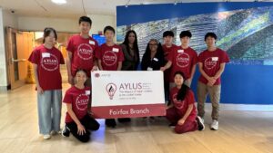 On August 17, 2025, AYLUS Fairfax Branch partnered with the National Youth Visionaries Association (NYVA) to volunteer at the NYVA art gallery at the Holy Cross Hospital in Silver Spring, MD. NYVA is a nonprofit organization dedicated to protecting our environment. Many of its members created beautiful artworks celebrating the beauties of nature, which were then gifted to the hospital.