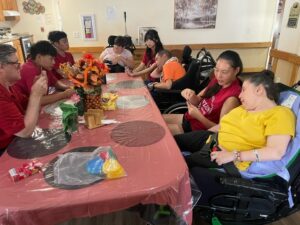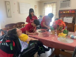 Residents were very friendly when they saw us. We started off by doing some arts and crafts. There were stencils that we could decorate so that’s what we did. They painted the frames very colorful and would like to hang them on their wheelchairs.