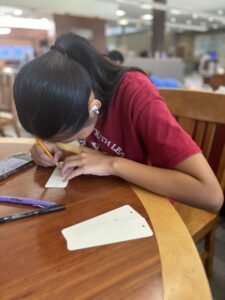 Participants spent two hours meticulously designing and illustrating bookmarks. The activity served as a fun and engaging way to utilize the materials recently collected from our donation drive. The bookmarks created during this event will be used in our upcoming fundraiser, with all proceeds directly supporting future community service projects.