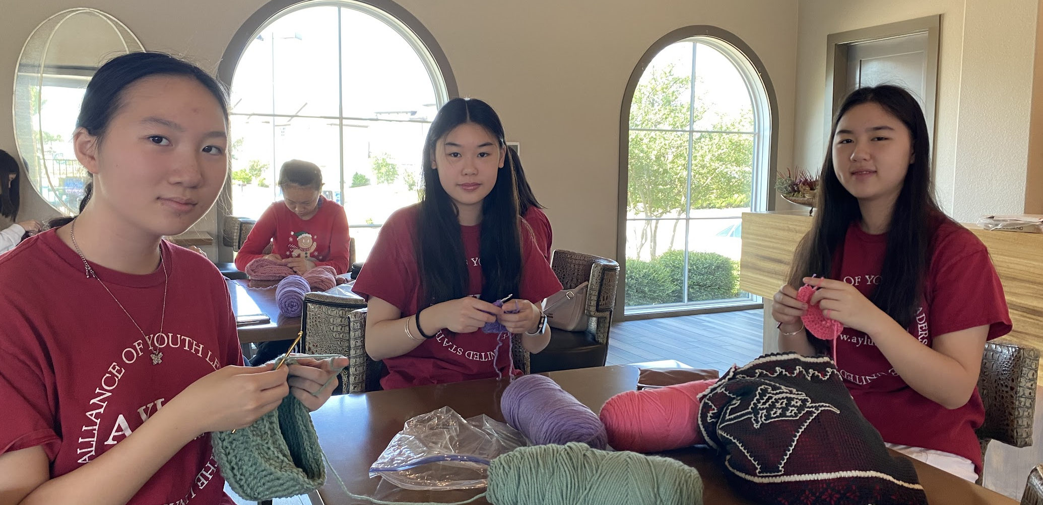 On the morning of August 24th, 2025, AYLUS Frisco & Plano Branch members gathered at the Lexington County clubhouse for a Loops For Love Project event. At the event, members signed in and got straight to work crocheting their hats for donation. Some newer people learned the basic pattern of the hat and got to work on their own while some of the other volunteers taught them. Many volunteers even managed to finish their hats and got started on new ones. Overall, this was a great event!