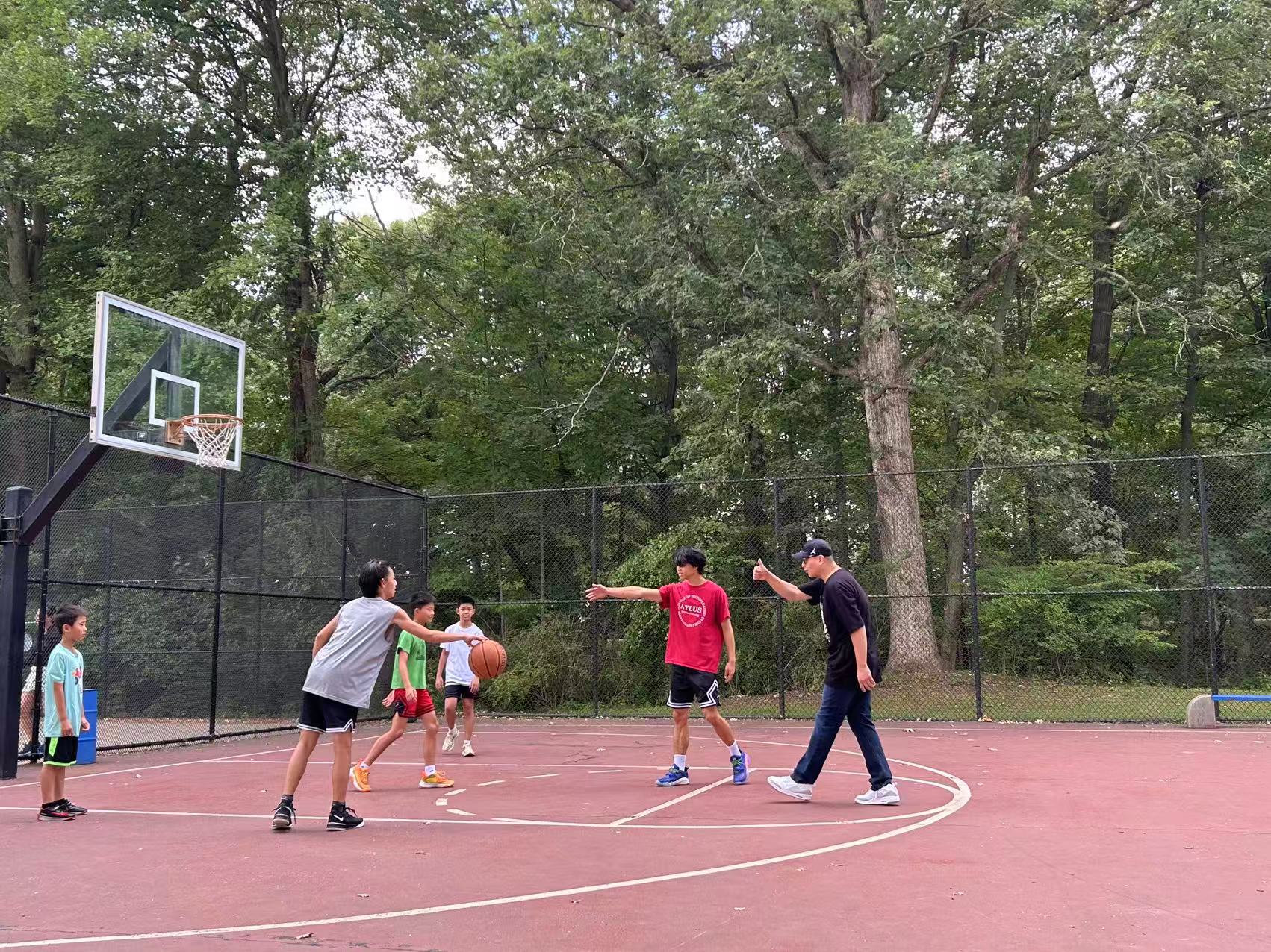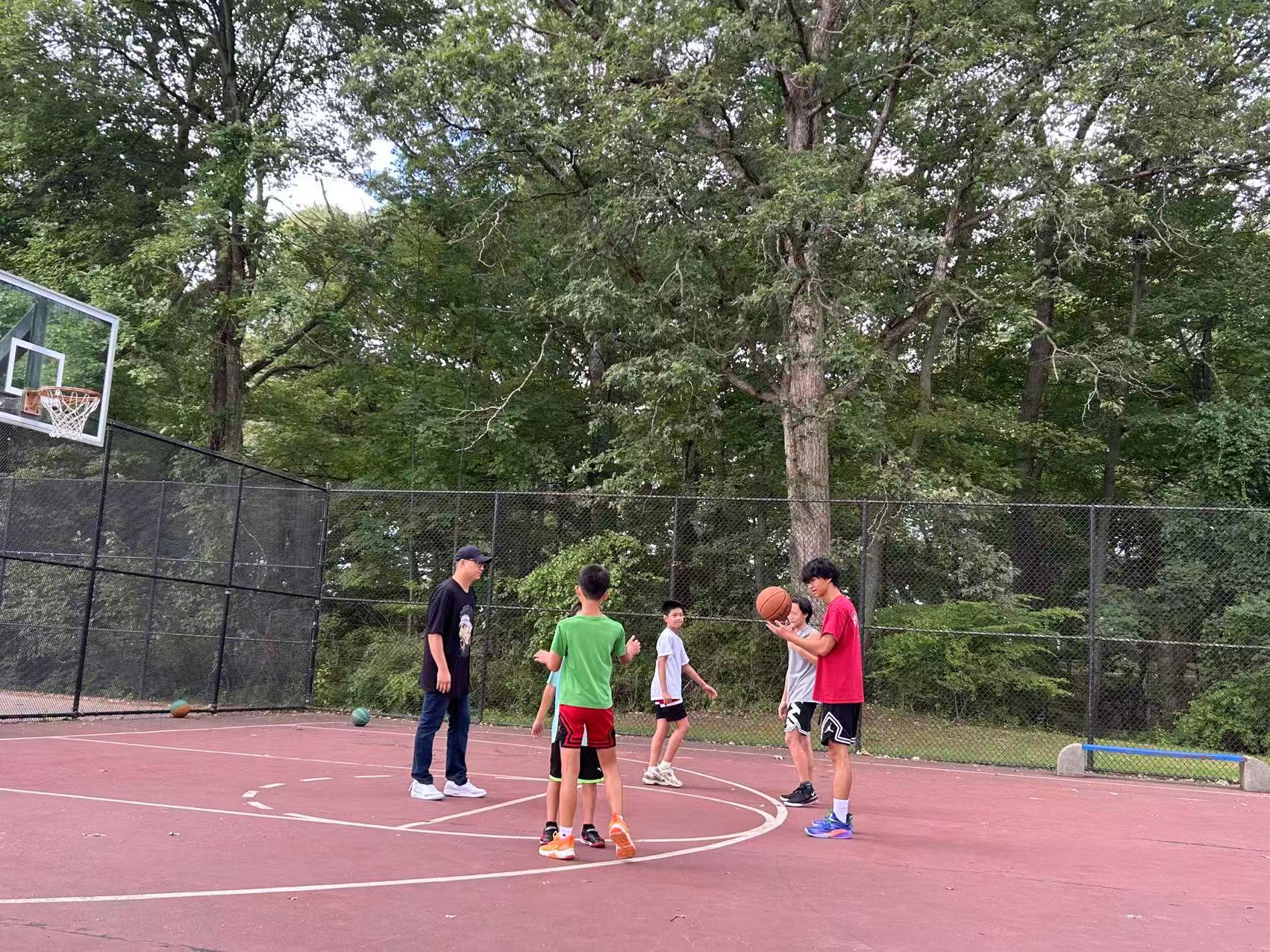 On August 25, 2025, AYLUS Syosset hosted a Sunday morning basketball session at the Syosset-Woodbury Community Park Basketball Court. The activity included one hour of basic training (9:00–10:00) followed by a scrimmage for players aged six and above with prior experience (10:00–11:00).