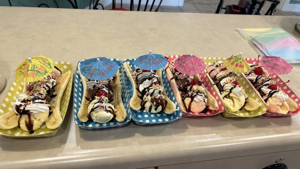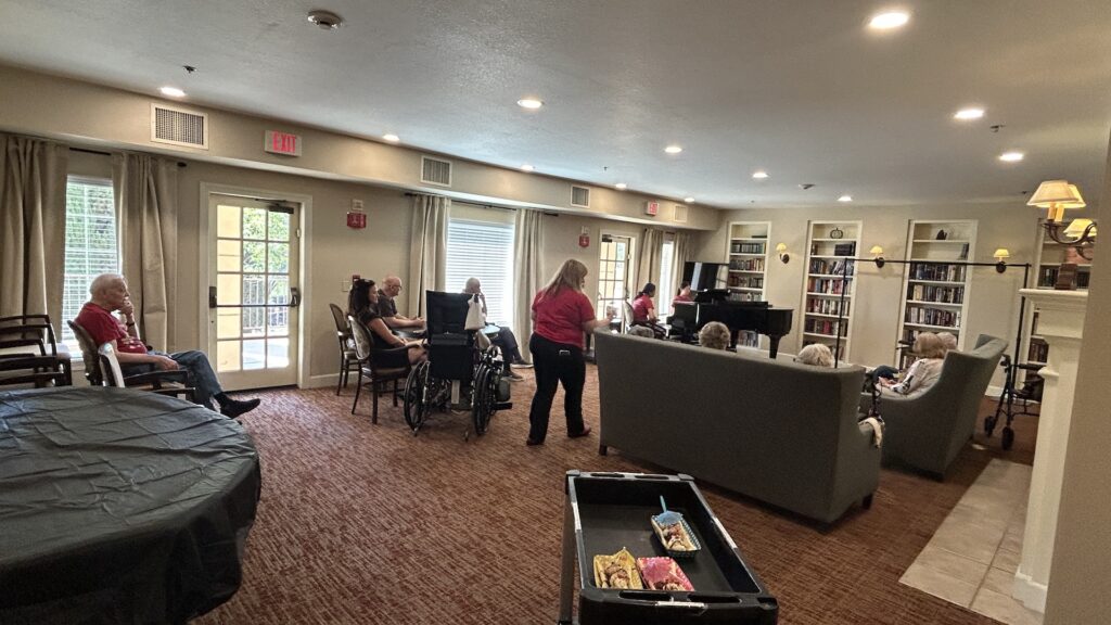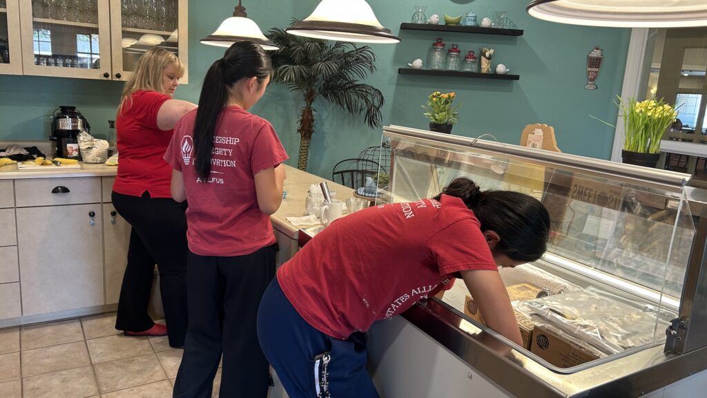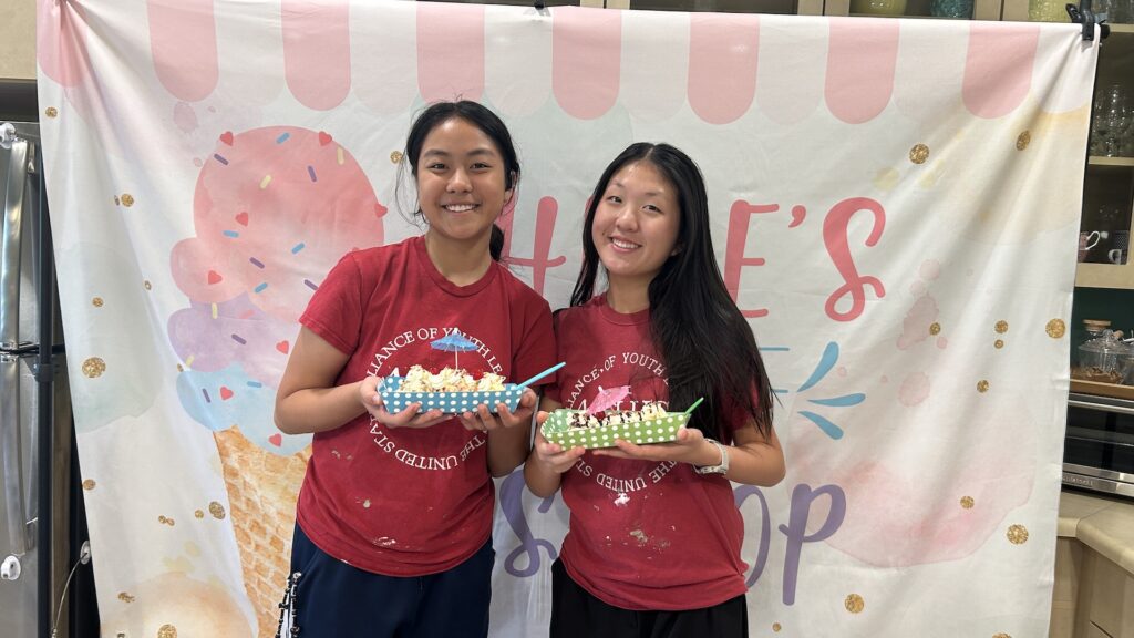 On August 24th, 2025, Murrieta AYLUS members dedicated their time to helping at the local senior center. The group split into two teams: one team performed piano music at the library, where many seniors had already gathered, eager to enjoy this special weekly activity. Meanwhile, another member volunteered at the ice cream station, surprising the residents with delicious banana splits. The treat was a hit with everyone, and even the staff joined in to enjoy the sweet treats alongside the residents. Of course, our members were more than happy to share a bite of the yummy banana splits with the residents.