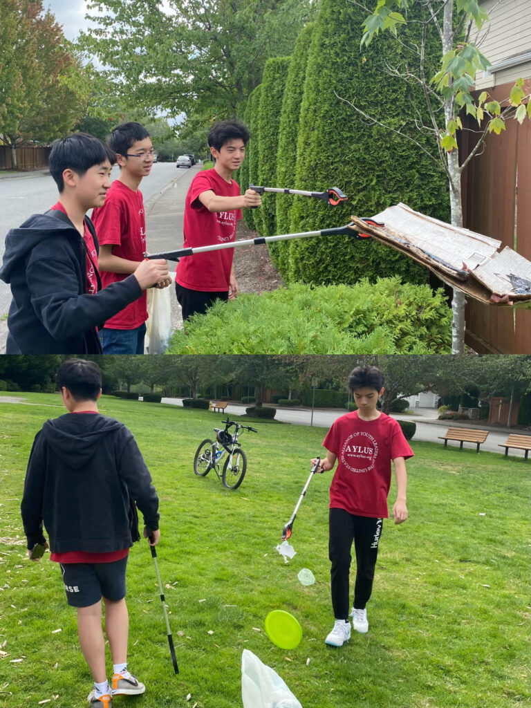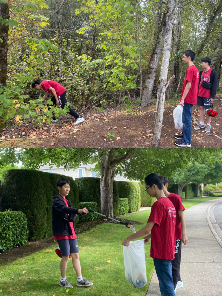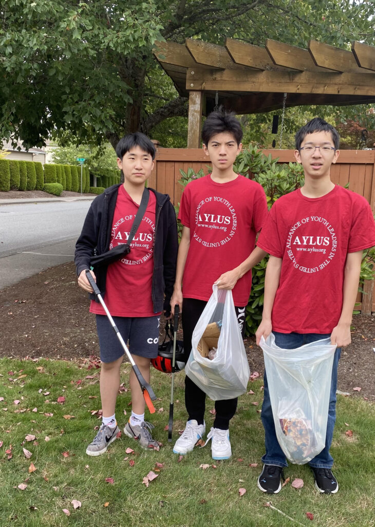 On August 31, 2025, the AYLUS Lake Washington Branch organized its third community cleanup event in the Vintage and surrounding neighborhoods of Sammamish. From 1:00 PM to 2:30 PM, branch members Eric Huang, Joey Zhu, and Kevin Chen walked through the neighborhoods, park, and trail—collecting one and a half bags of garbage, sorting recyclables, and properly disposing of waste.