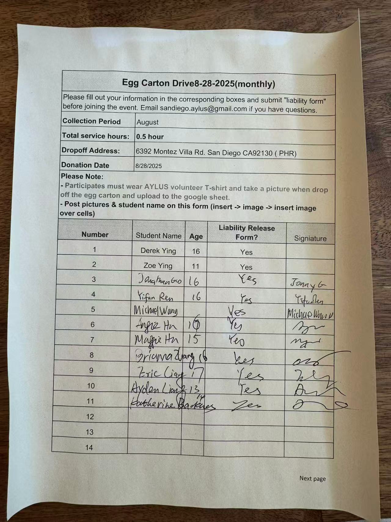 By 8/31/2025, our branch had collected a total of 20 egg cartons. Our neighbours who weren’t apart in the program donated 14. The total is 34.