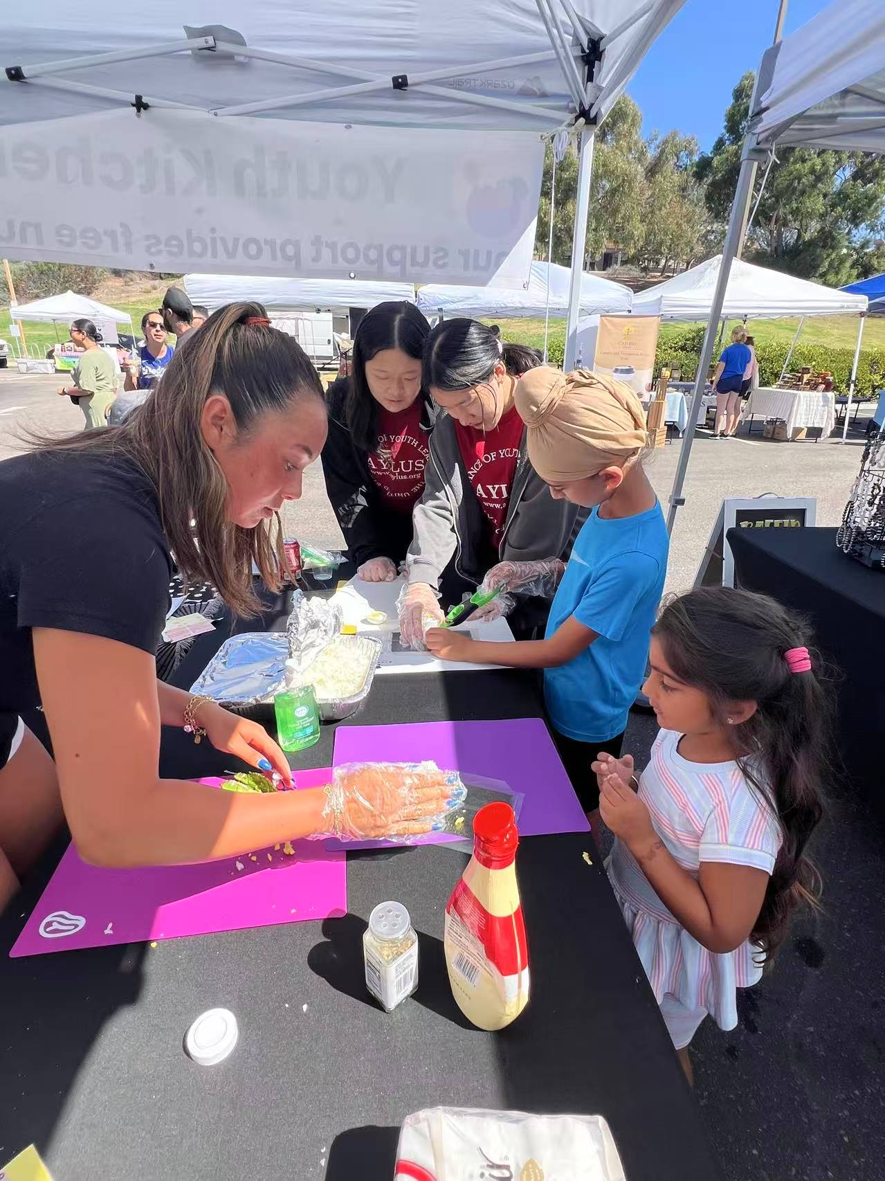To support Youth Kitchen San Diego, a 501(c)(3) nonprofit organization, in its mission to empower youth with nutrition knowledge and healthy meal preparation skills. As a new organization with limited staffing, Youth Kitchen San Diego requested assistance from AYLUS San Diego volunteers to help operate their booth at the Carmel Valley Farmers Market.