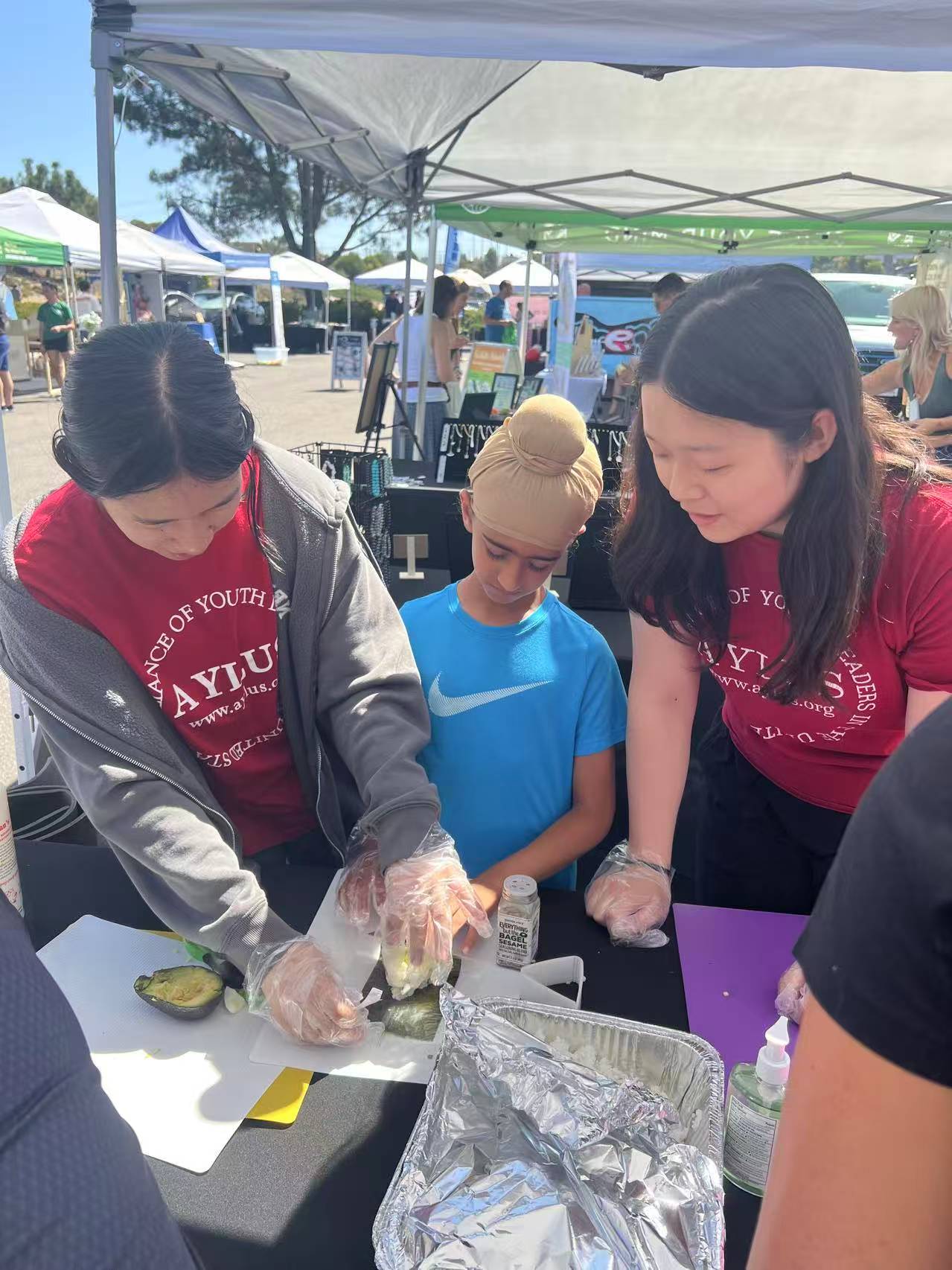 AYLUS San Diego partnered with Youth Kitchen San Diego to provide volunteers for their booth at the Carmel Valley Farmers Market. The volunteers assisted in a variety of responsibilities including:
