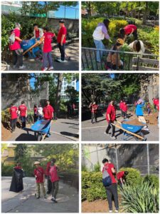 Our members started the event off by mulching trees. We used shovels and pitchforks to put the mulch in wheelbarrows, which were then wheeled off. Our members lifted the extremely heavy wheelbarrows over the fence to dump the mulch on the dirt. Our members then used the rakes to spread the mulch. During that time, other members used garbage grabbers to pick up large amounts of trash. These trash pieces are then placed in garbage bags. Eventually, they finished and went to go help the mulchers. Meanwhile, the weeders used shovels and their hands to pull up weeds from the roots. This was extremely hard, as some of the weeds reached deep into the earth. Eventually, they also finished and went to go help the mulchers.