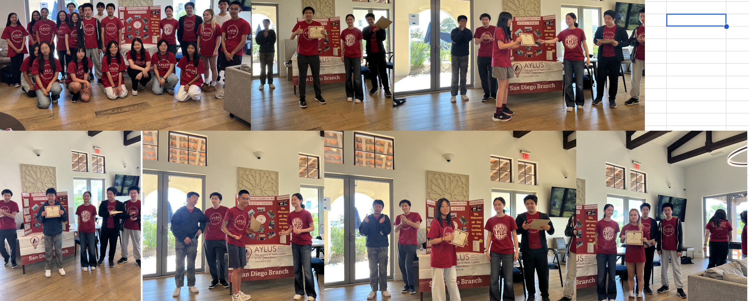 At the beginning of the ceremony, we introduced all of our weekly programs, such as Smiling Stars, Online Classes such as Beast Academy, 1 on 1 Tutoring, and English for the Elderly, and then additionally our Food Bank, C2K and Bottles and batteries Recycling event. Furthermore, we briefly listed numerous other events such as our donation drives, and encouraged all of the volunteers to become leaders themselves, create and lead new events and help improve our community. We then passed out all of the awards to each of the recipients, and congratulated all of them on their hard work and effort, contributing to not only the community but to AYLUS and even having global impacts through our Libraries with Love program.
