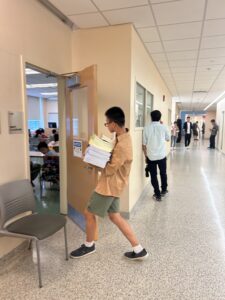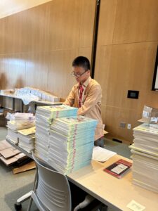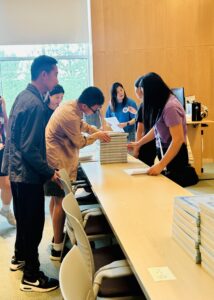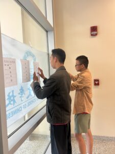 To prepare for the beginning of classes, AYLUS volunteers rushed to different classrooms with books and papers in hand. Each student was to receive their standardized learning books, along with two notebooks for character writing. AYLUS volunteers also cataloged and tracked which classrooms were missing books. The organizational and teamwork skills AYLUS volunteers displayed demonstrates their hard work and care. Thanks to volunteers, the first day of Long Island Chinese School was a success.