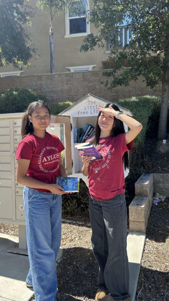 On September 20, 2025, the AYLUS Murrieta Branch donated books to the two Little Libraries in the Morgan Hill community. In addition to contributing books to stock the boxes, members also cleaned and re-arranged the books, ensuring that the libraries were well-maintained and inviting for all community members. Their efforts aimed to foster a love of reading and provide accessible literature to those in the neighborhood.