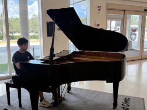 On Monday 09/01/25, members of the Plantation Branch of AYLUS traveled to Cleveland Clinic Florida to perform music once again for patien s and visitors at the hospital. After a great deal of rehearsal, members traveled to the hospital to play piano and violin for an hour.