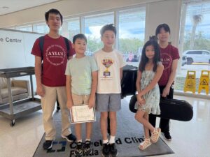On Tuesday 09/23/25, members of the Plantation Branch of AYLUS traveled to Cleveland Clinic Florida to perform music once again for patients and visitors at the hospital. After a great deal of rehearsal, members traveled to the hospital to play piano and violin for an hour.