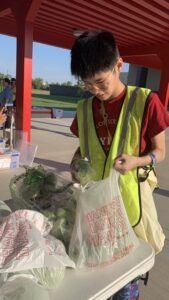 Our members helped sort squash into 5 pound bags, ensuring that the produce was fresh. Later, they helped count out the correct amount of bags per family and load the bags into cars.