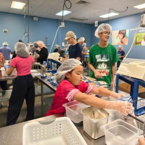 On September 20, 2025, we volunteered at Feed My Starving Children (FMSC), a Christian nonprofit dedicated to ending world hunger. The session began at 7:15 PM, with volunteers gathering to pack MannaPack Rice—a specially designed meal that contains rice, soy, vegetables, and essential vitamins to combat malnutrition.