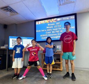 After about an hour and 45 minutes of packing, we helped with cleanup. By the end of the evening, our team had packed 107 boxes, totaling 23,112 meals—enough to feed 63 children for an entire year.