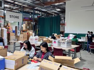 Volunteers were given the opportunity to assemble stock for the warehouse’s storeroom with donated supplies, such as notebooks, binders, and paints. Volunteers also labeled donated and purchased items for sale to teachers and other educators.