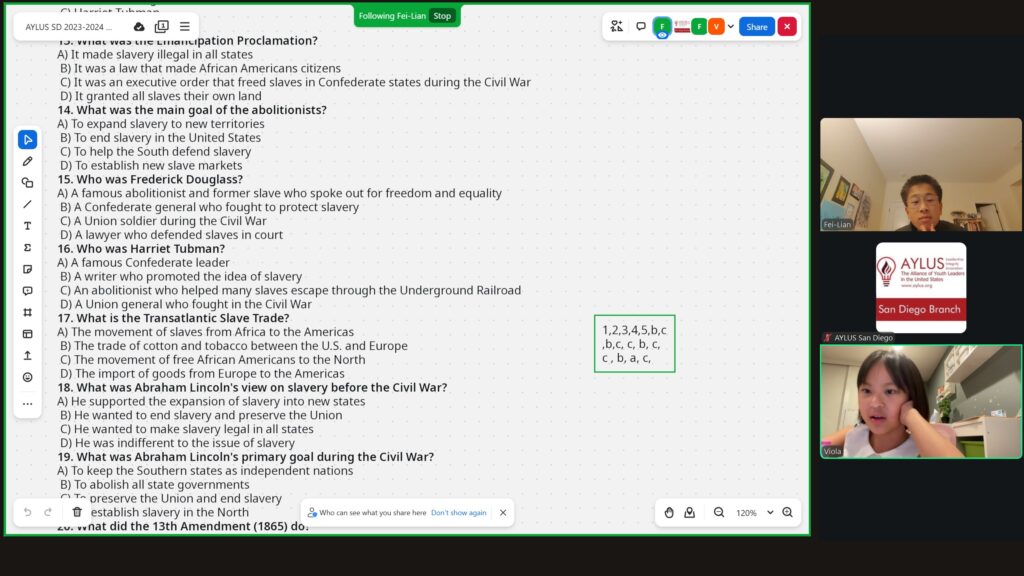Through this activity, AYLUS volunteers were able to teach 7 students a wide array of topics and led them through many different discussions, each one tailored to suit the student’s individual needs. Each class is a one-on-one private lesson, with volunteers specifically matched with students.