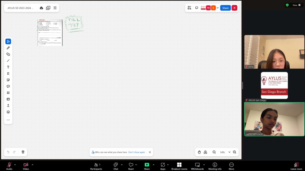 Coop with Libraries With Love, the AYLUS San Diego Committee kicked off the 2025-2026 Solution for Hope online classes for raising funds to build libraries in Africa. The Tutoring Class Activity continued in the week of Sep 15, 2025 – Sep 21, 2025.
