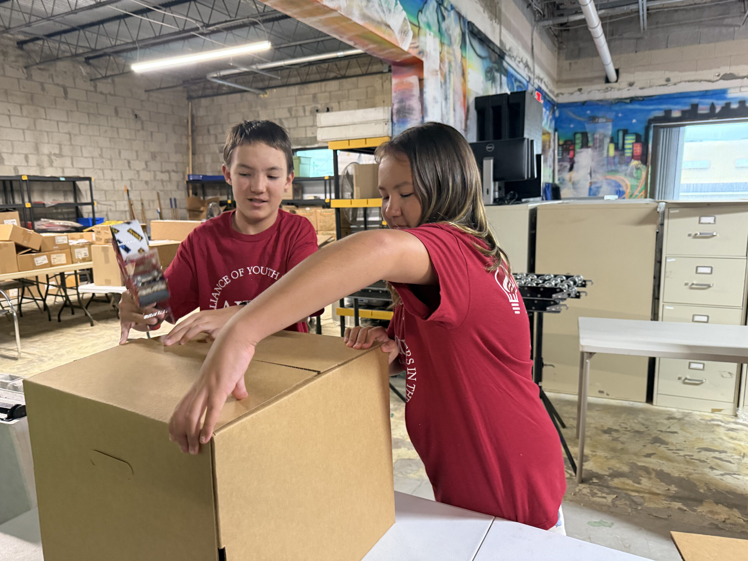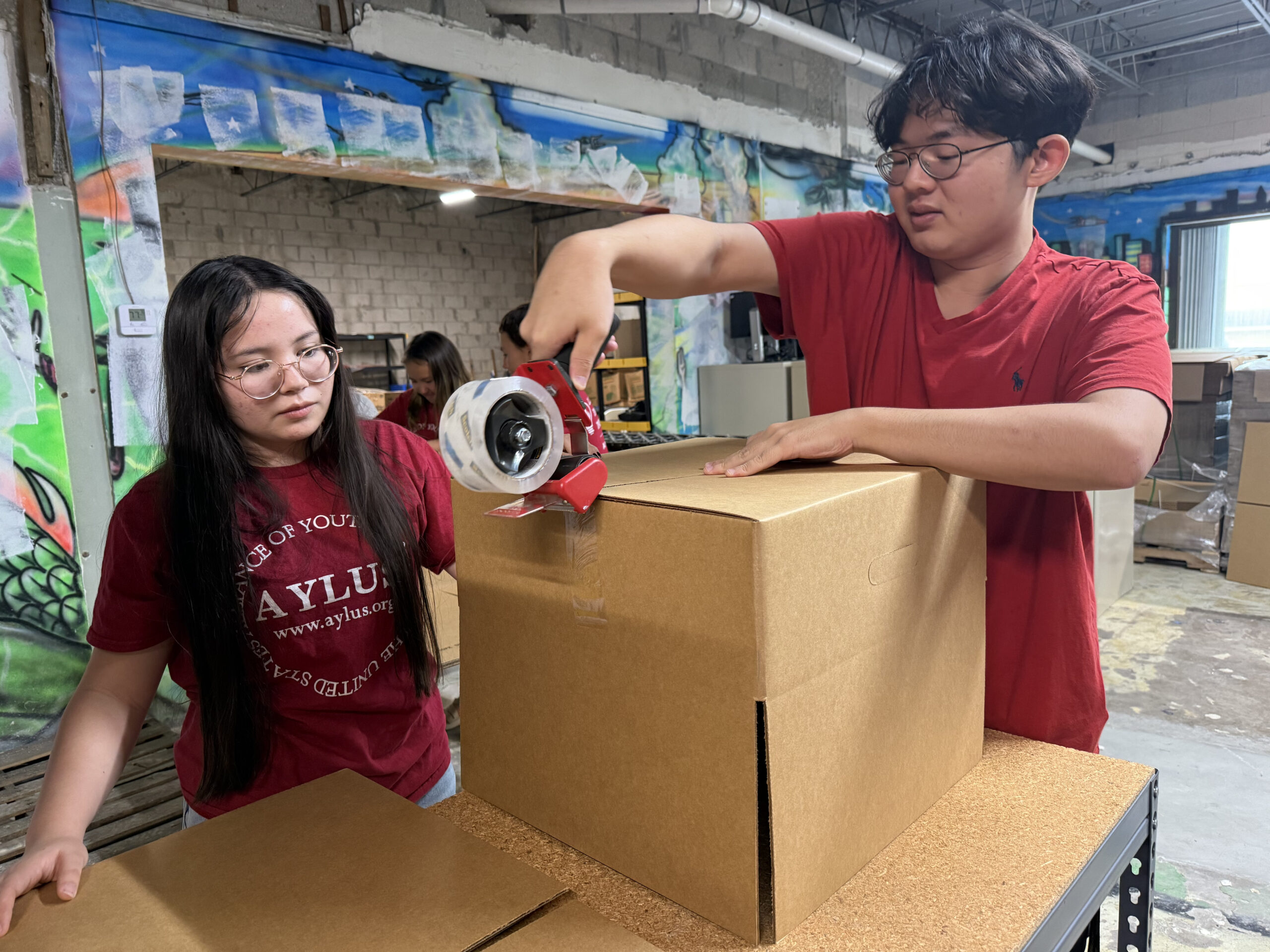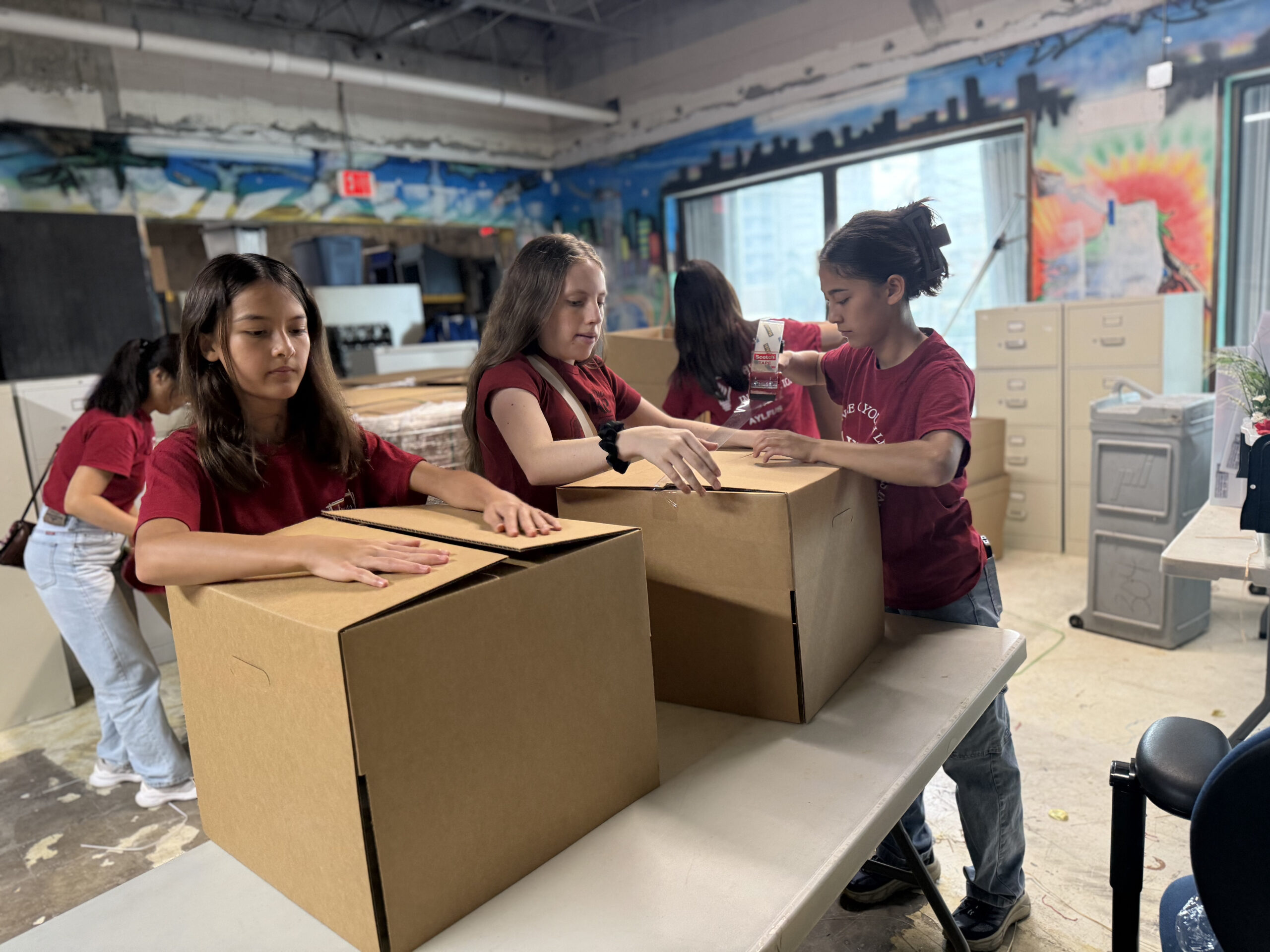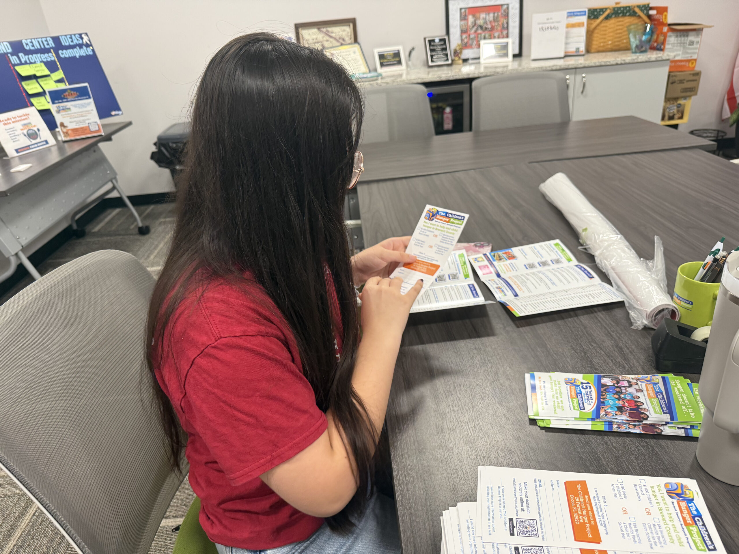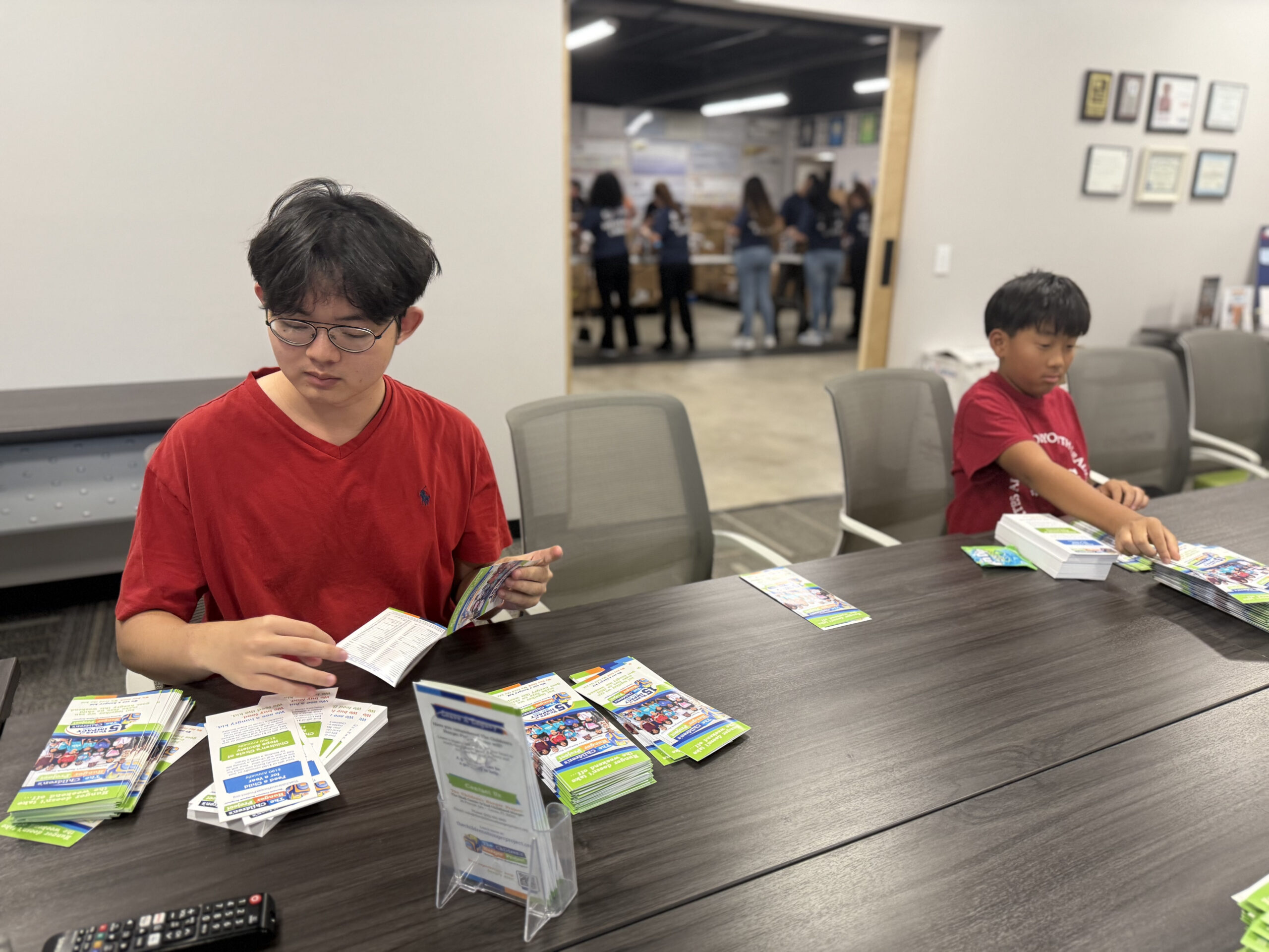 Our volunteers helped prepare brochures with information regarding how others can contribute to The Children’s Hunger Project and taped boxes for the packaged foods to be stored in.