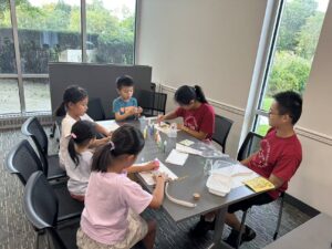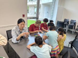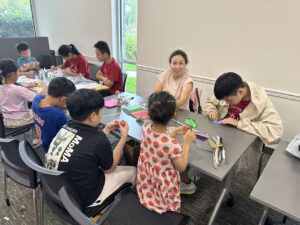 On Saturday, September 27th from 4:00 PM to 5:30 PM, AYLUS volunteers helped kids with a series of activities like sand art, clay modeling, origami, crochet, and reading. First the kids listened to stories. Victoria read “The Truth About Dragons” and Ryder read “Smiling Eyes”. After reading, Rainie helped with crochet, Jolynn taught kids how to make chickens, Rebecca and Nathan helped kids learn how to do sand art, and Andrew helped with origami. The kids also learned how to make lucky stars.