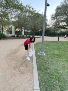 Evelyn’s Park, a popular gathering place for local events, was recently the site of a cleanup hosted by the AYLUS Bellaire Branch. Volunteers collected litter such as bottle caps, snack wrappers, and utensils scattered throughout the park. By the end of the event, they had filled and properly disposed of six bags of trash, contributing to a cleaner and more welcoming community environment.