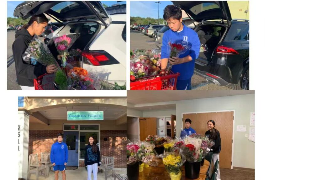 On Sunday, October 5th, 2025, two members of AYLUS Chapel Hill Branch helped support Charles House by collecting flowers generously donated by Trader Joe’s. These beautiful blooms were delivered to Charles House, a nonprofit that provides care for seniors and those with dementia within the Carol Woods Retirement Community. The flowers will be used in a creative art project with the seniors on Monday, brightening their day and encouraging creativity. This effort is part of our ongoing commitment to supporting the health and happiness of the elderly, and we look forward to more opportunities to give back.
