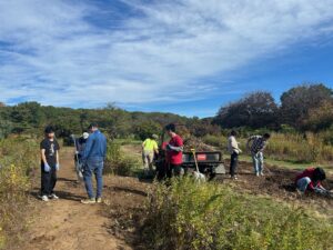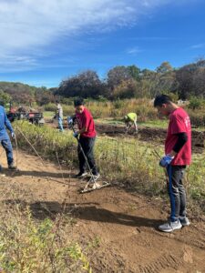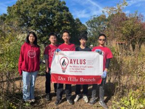 On Saturday, October 18th, from 9:00 am to 11:00 am, a group of members from the AYLUS Dix Hills decided to volunteer at Bethpage State Park. This beautiful place is known for its five world-class golf courses and also where many championships took place. As all the volunteers gathered together, we drove our vehicles to the gardening area that needed to be revamped and cleaned up. Firstly, each helper used several tools to get rid of anything that didn’t belong in the gardens. Our purpose was to make the rows of garden areas more aesthetically pleasing and to remove any invasive ivy that could potentially spread throughout the area. We prevented the invasive ivy from killing all the other healthy native plants. It is important to remember that they always grow back. A simple solution to this is to dig out the roots. This means the growth process will slow down, so it doesn’t have to be maintained as high.