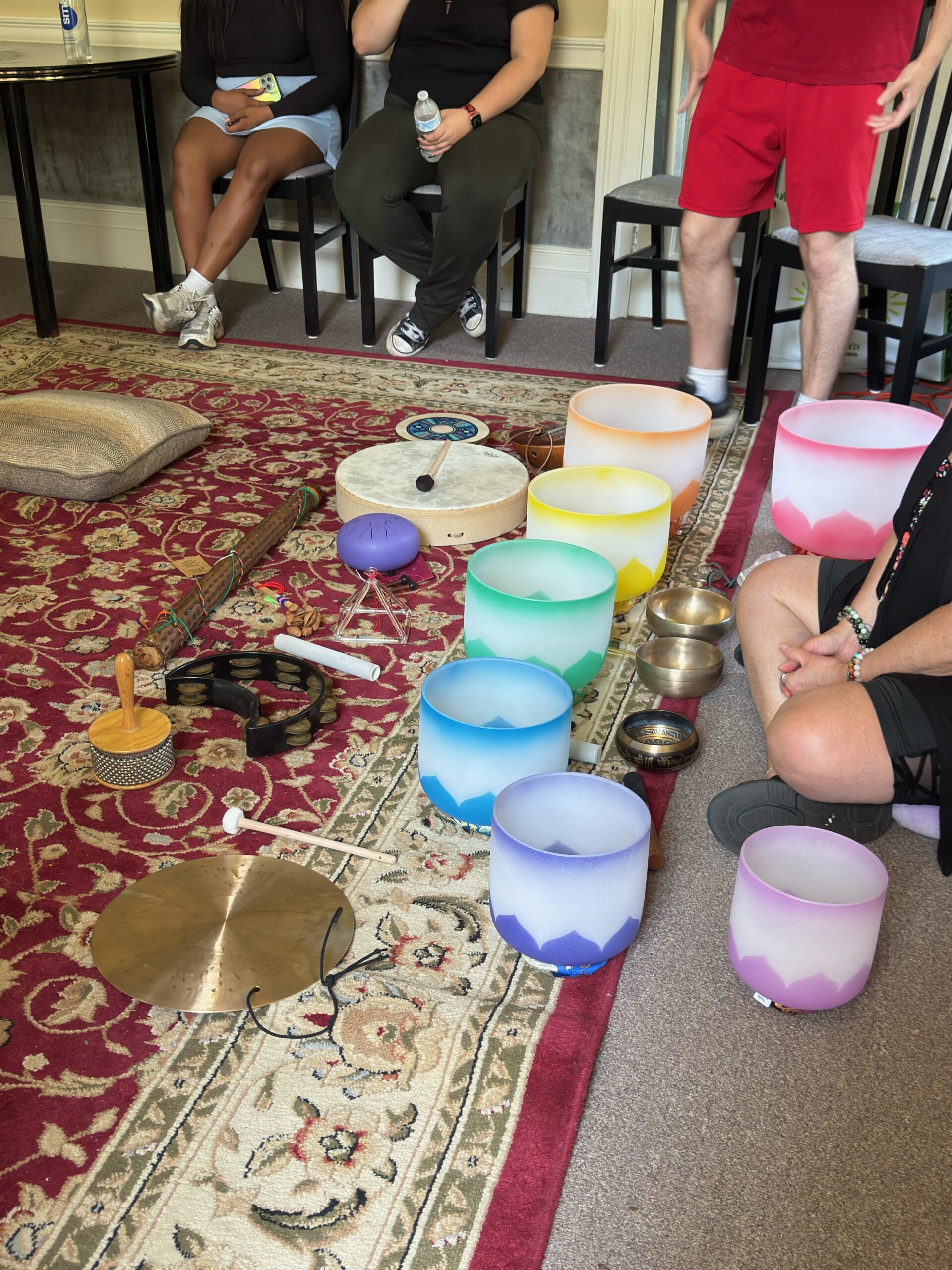 On Monday, July 28th, Syosset AYLUS visited the Sangha Learning Center, a non-profit organization that provides a safe space for individuals with high-functioning ADHD, autism, and OCD to come together and decompress. During this visit, we made a soothing skincare cream using natural ingredients like milk and honey. We poured equal amounts into individual bowls so that members could try and enjoy the calming mixture. Afterward, we were able to wipe and clean our hands, and many people said their hands felt noticeably smoother. Later in the session, we experienced singing bowls and sound healing practices. We also learned about various stones, such as ruby, jet, and tigerite, and their different properties. We then closed our eyes and listened to the unique vibrations and tones of different instruments, creating a peaceful and relaxing atmosphere for everyone.