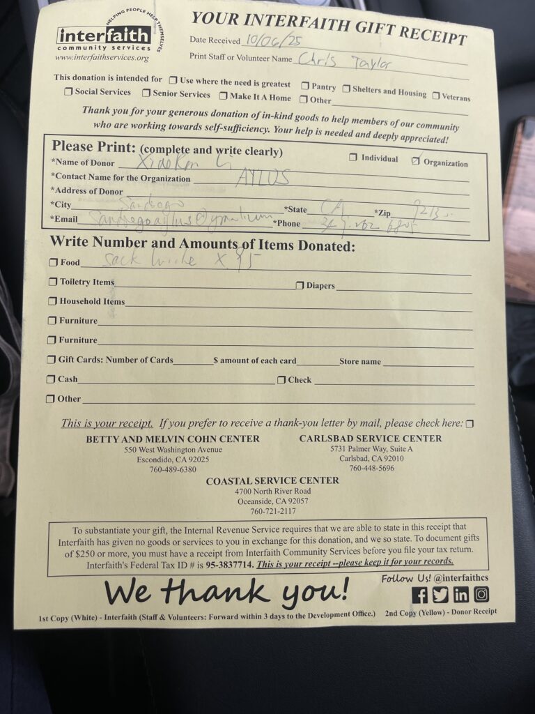 On October 6, 2025, AYLUS San Diego Branch made sack lunches for Interfaith Community Services.