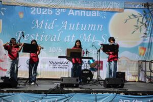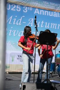 On October 5, 2023, eight members from the AYLUS Rancho Cucamonga Branch Band took the stage at the 3rd annual Mid-Autumn Festival, presenting five wonderful performances. The musicians were divided into two bands, both of which were newly formed in August 2023. Over just two months, members used their spare time to search for music scores, organize rehearsals, and coordinate with one another. Their dedication and teamwork led to a smooth and well-prepared performance day.