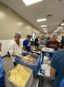 On October 25, 2025, the Phoenix Branch volunteered at the local FMSC. During the volunteering event, the members of the branch packed ingredients such as rice, soy, vegetables, and vitamins into plastic bags for children around world. The volunteers all had specific jobs in the process, such as scooping, bagging, weighing, or sealing. By the end, they packed many boxes of Mannapack Rice!