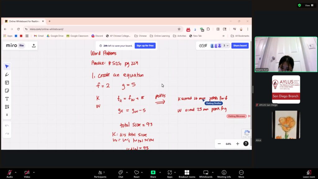 Coop with Libraries With Love, the AYLUS San Diego Committee kicked off the 2025-2026 Solution for Hope online classes for raising funds to build libraries in Africa. The Tutoring Class Activity continued in the week of Sep 29, 2025 – Oct 5, 2025.