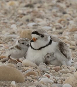 Piping Plovers are an endangered shorebird that migrate to Jones Beach every Summer to breed and raise their young. Areas that have important nesting and foraging habitat at Jones Beach are marked with orange string fence to keep patrons from disturbing them and other shorebirds.