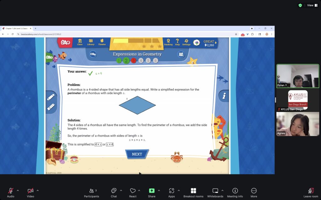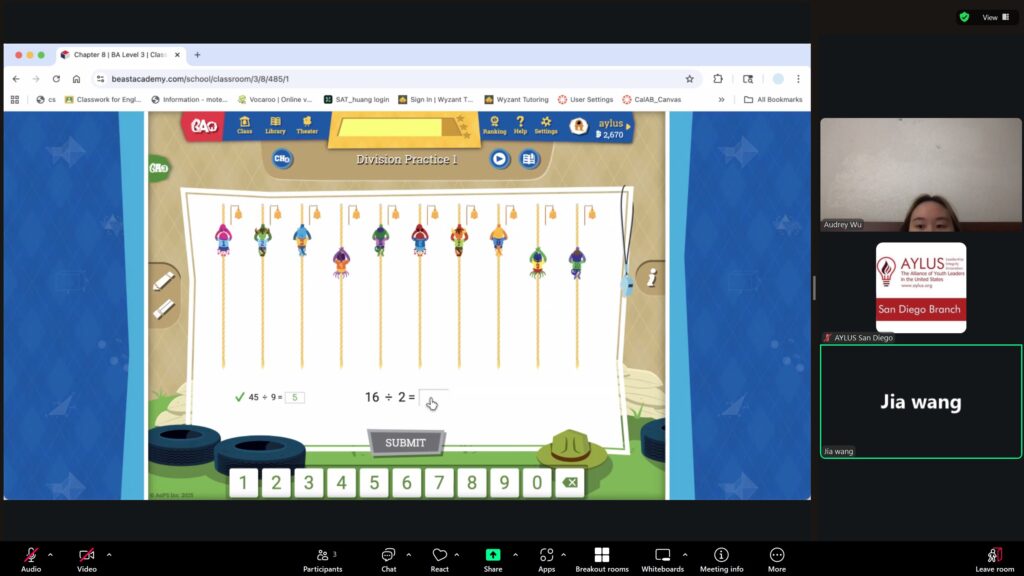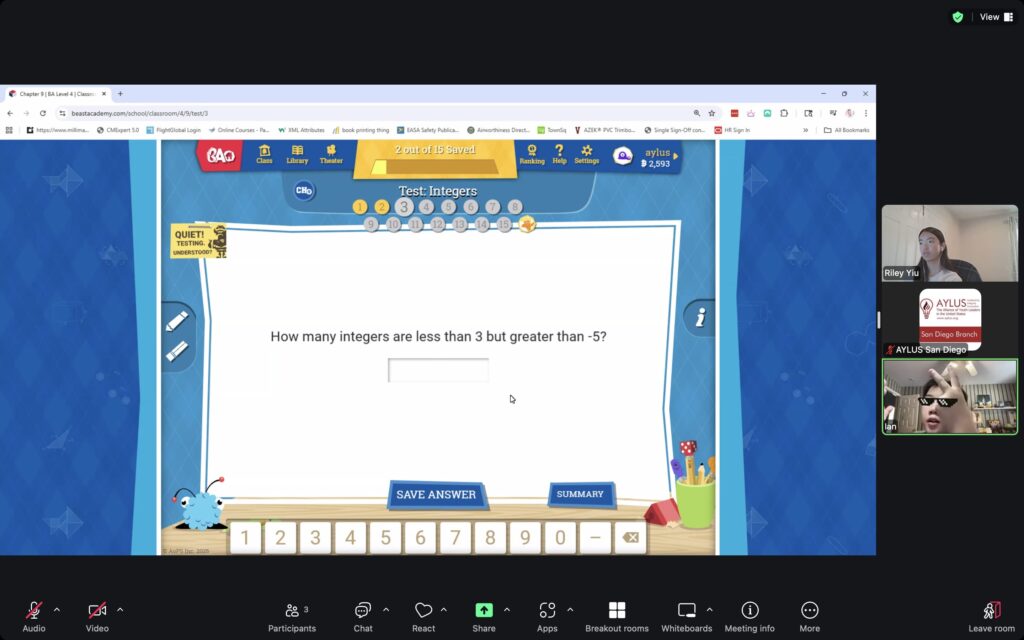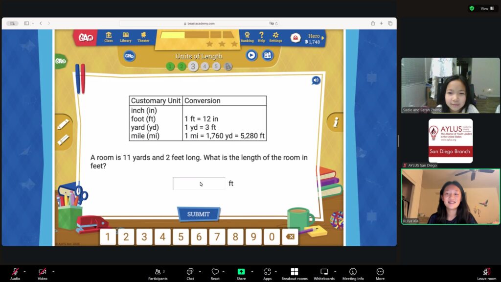 AYLUS San Diego Committee kicked off the Beast Academy online class in 2020 during the COVID-19 period. During 2025-2026, we continue cooperating with Libraries of Love to raise funds. The 61th Beast Academy online class in 2025-2026 was on October 12-October 19, 2025.