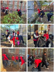 On October 25th 2025, 9am to 12pm, AYLUS Oakland Gardens held their 201st event at Browne Playground outside of P.S 020. During the event we collaborated with Maureen and Ada on cleaning up and mulching the Playground.