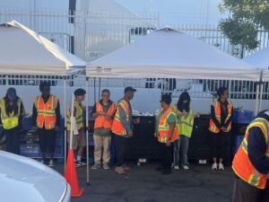 Throughout the event, volunteers collaborated to support the food distribution operations at the center. Their tasks included carefully